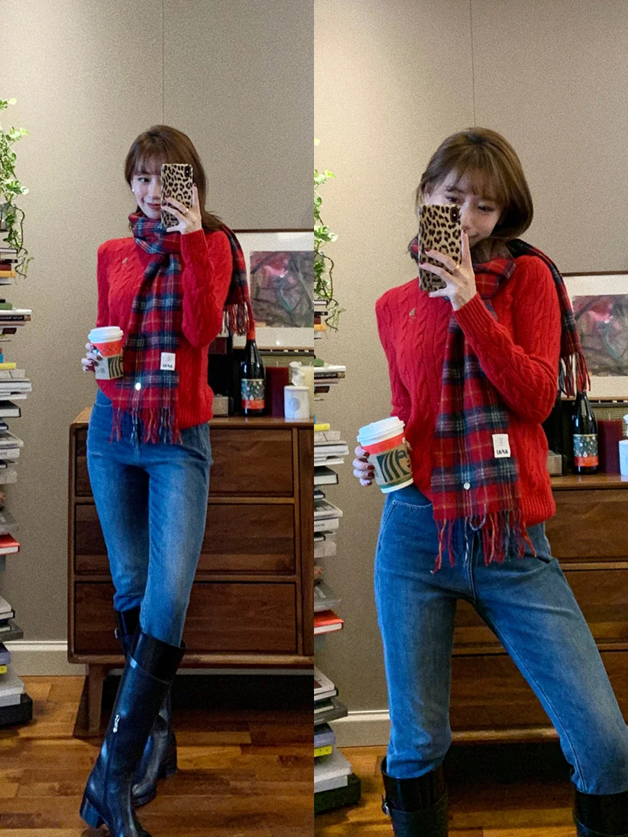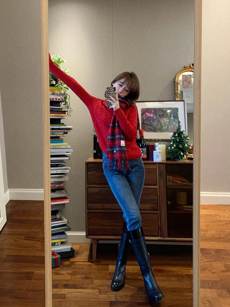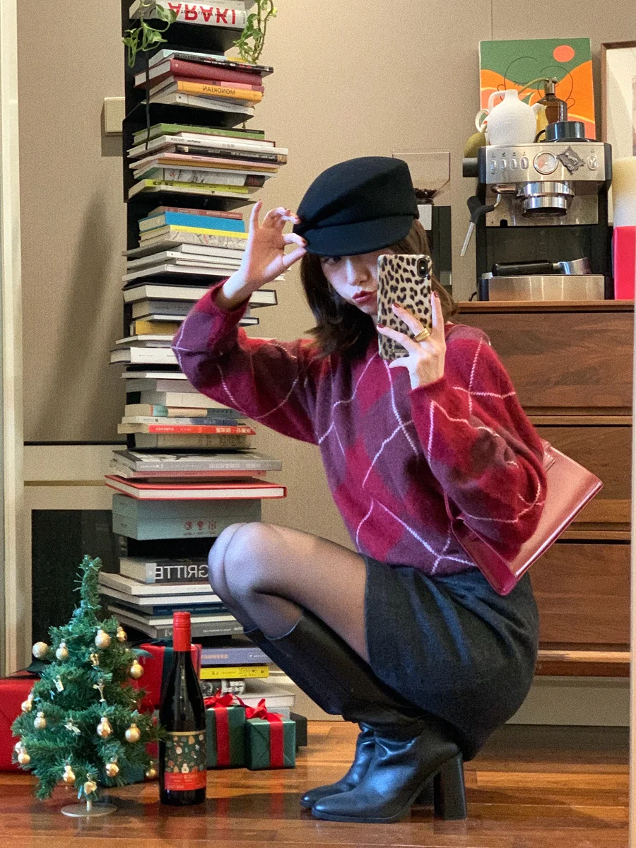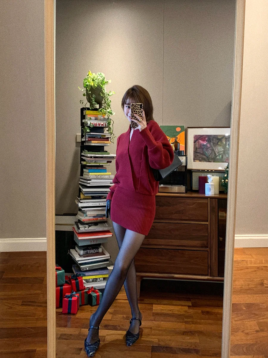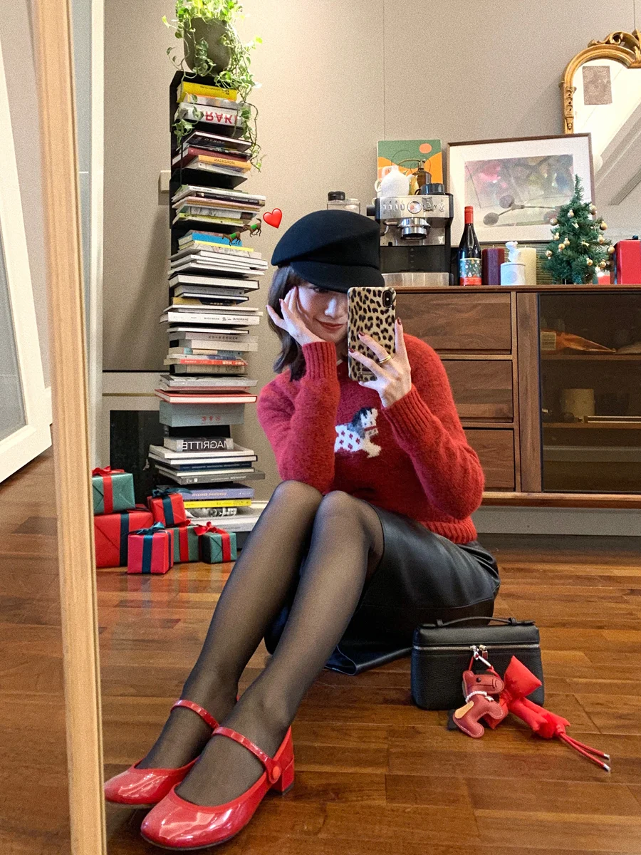 每到年末的穿搭刚需: 一抹红色!❤️❤️ 不爱大面积allred的话, 可以尝试用小物做点缀❣️ (巴拉法克帽啦~红色连裤袜啦~) 出镜单品都在明天上播哦