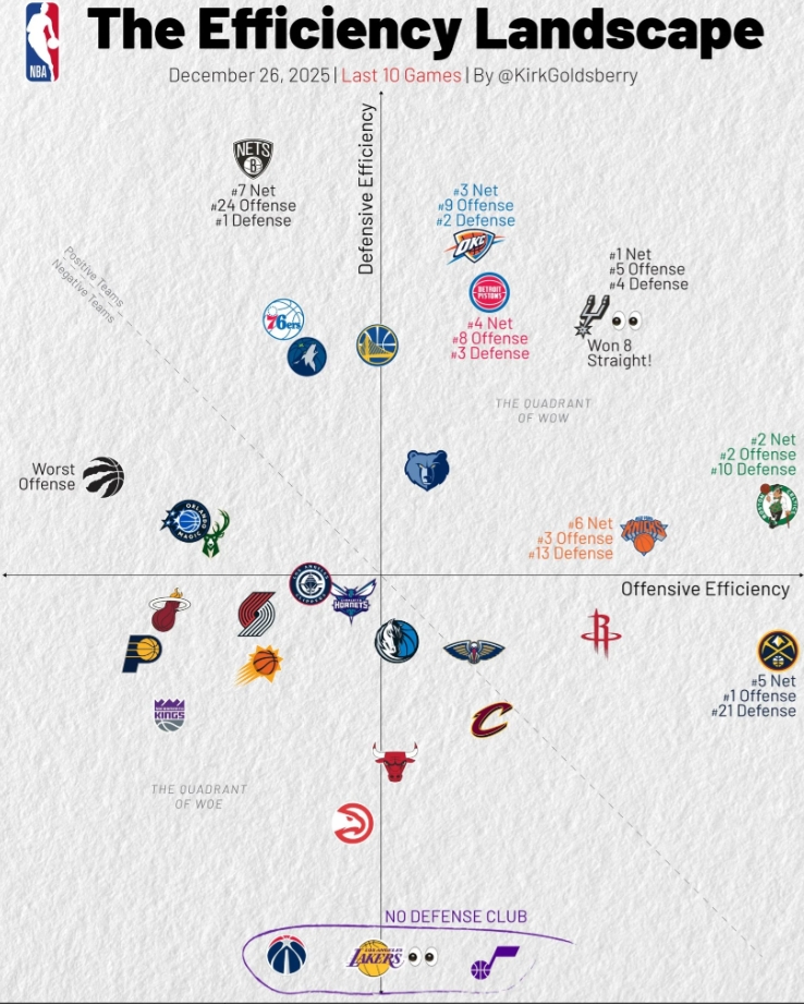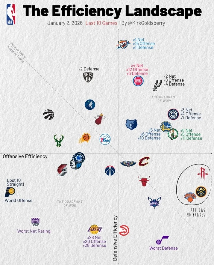 近十场掘金防守效率是全联盟倒数第一 12月26日掘金近十场防守效率排全联盟21位 1月2日掘金近十场防守效率排全联盟大概23位 1月9日掘金近十场防守效率排全联盟30位 约基奇不防守没态度,嫌弃大体型中锋脚步慢是球队防守弱环,当约基奇、瓦蓝因伤病原因缺席比赛,掘金防守效率排全联盟倒数第一
