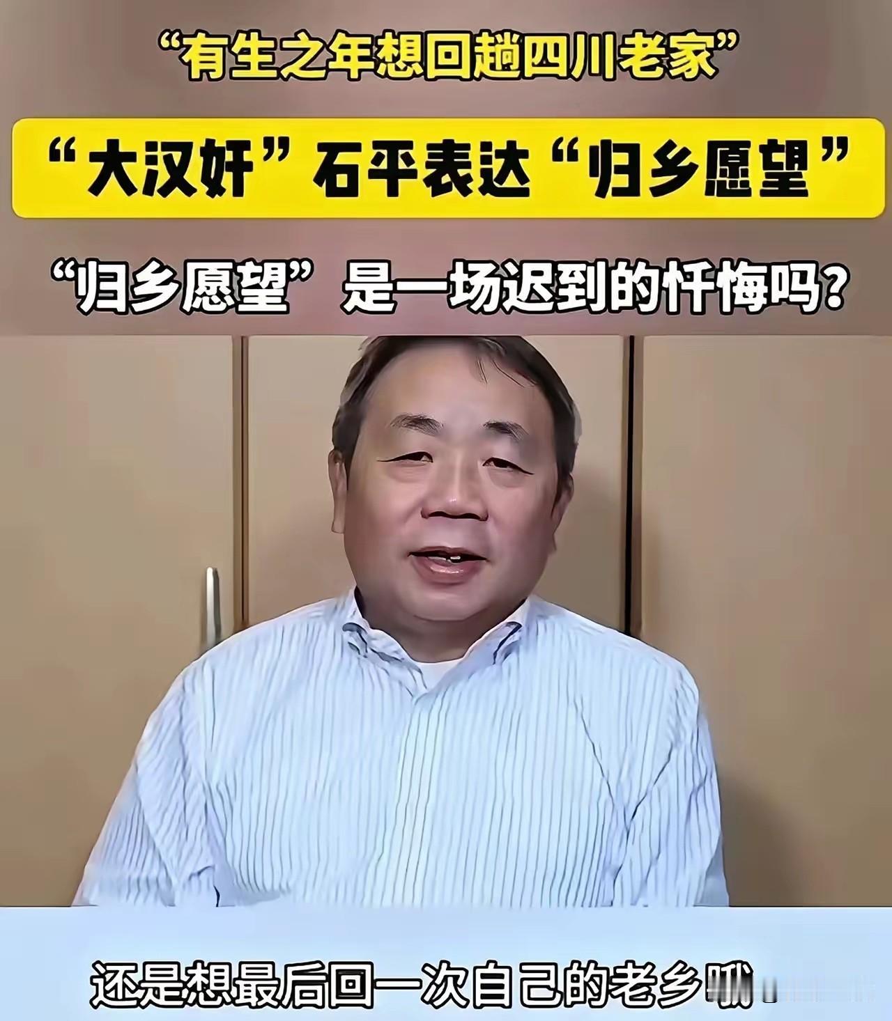 “大汉奸”石平想回四川老家过年? 老铁们答应嘛? 汉奸石平发视频表示,想在有生之年能回一趟四川老家看看。老铁们,咱们得擦亮眼睛。这不仅仅是回不回家的问题,这是底线问题!他以前那些反华言论,那些伤害民族感情的行径,哪一条不是往咱们心口上捅刀子? 外交部早就说了,这是“卖祖求荣”,必须严惩!咱们能答应吗? 肯定不能!他想回来,门儿都没有! 咱们得让他明白,中国不是想来就来,想骂就骂的地方!想吃家乡的饭?先想想自己配不配! 忘祖石平
