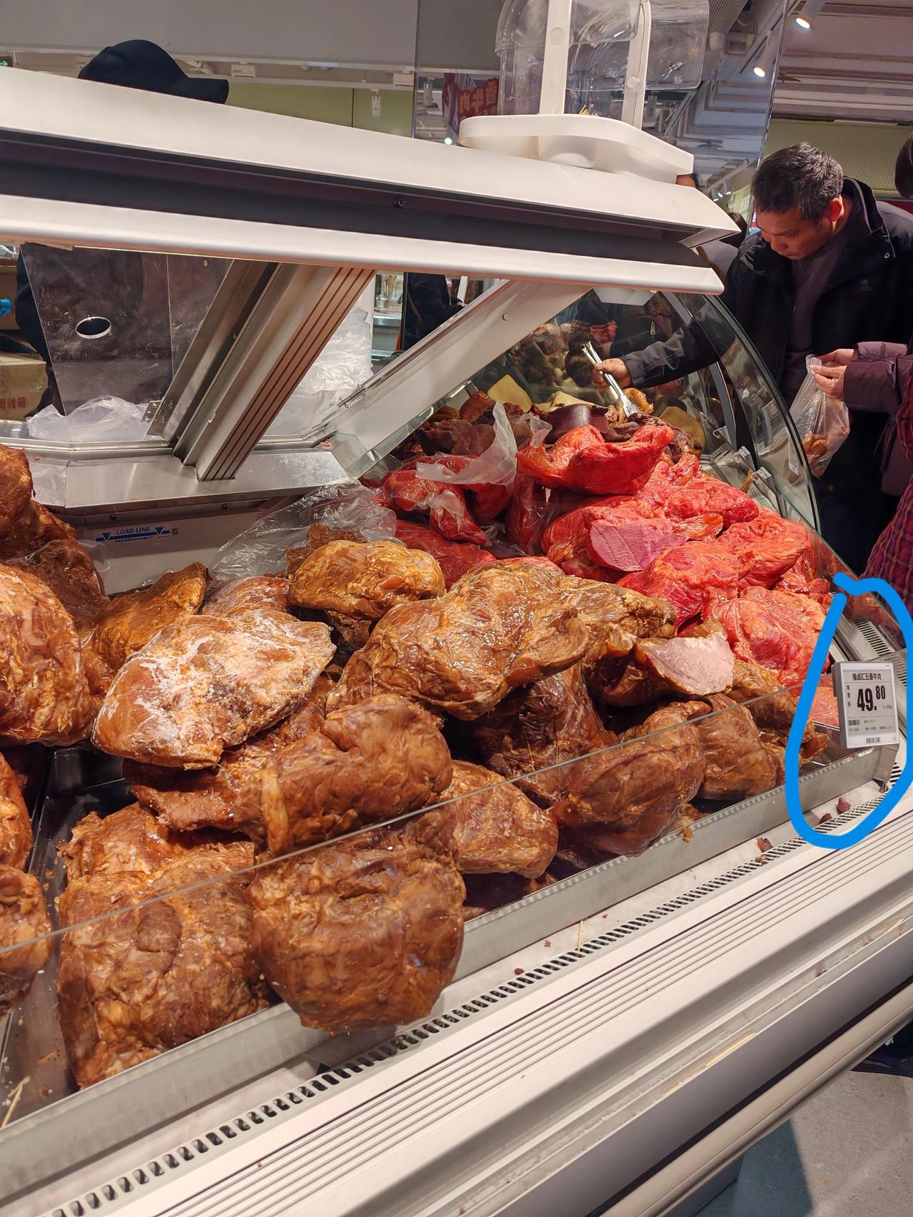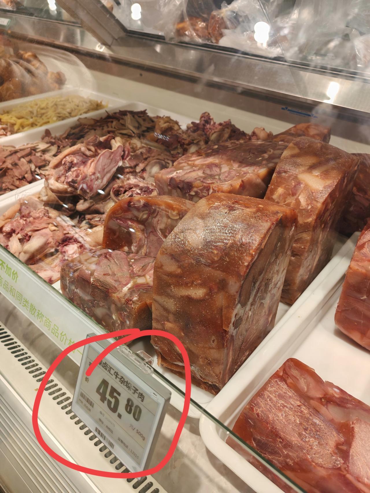 熟牛肉价意外 1月10日,坐标西安。这会儿我逛到了润家超市,进来溜了一圈,发现牛肉价格有惊喜,有图有真相。 腊牛肉49.8元1斤,酱牛肉49.8元1斤,牛头肉35.8元1斤,牛蹄筋35.8元1斤,牛肚55.8元1斤,牛肝19.8元1斤,图五这种牛杂墩子肉45.8元1斤。 以前有卖牛羊肉的本地博主孙哥在网上算过账,说酱牛肉成本价为65元,低于这个价,卖牛肉的没利润。 今天这一看,不一定,他的说法有待商榷,这是新开的大型商超,所卖的牛肉不可能挂羊头卖狗肉,相信是如假包换的牛肉。 为啥每次清真肉店的熟牛肉价单价七八十元,这里却能卖50元,到底是什么原因呢?牛肉价格