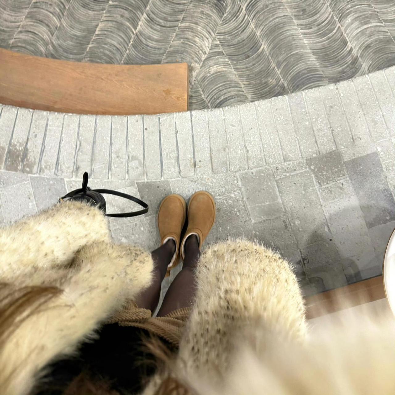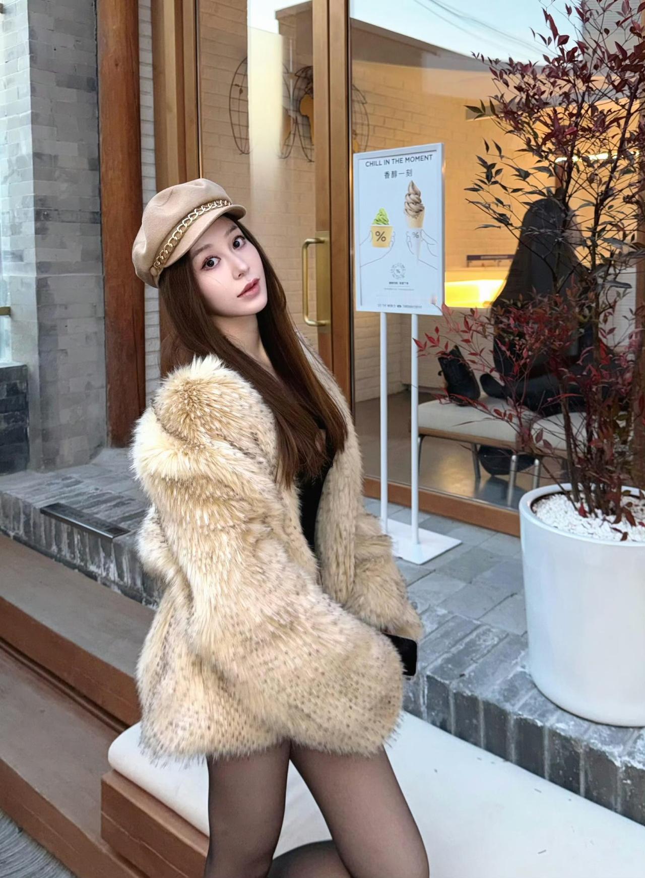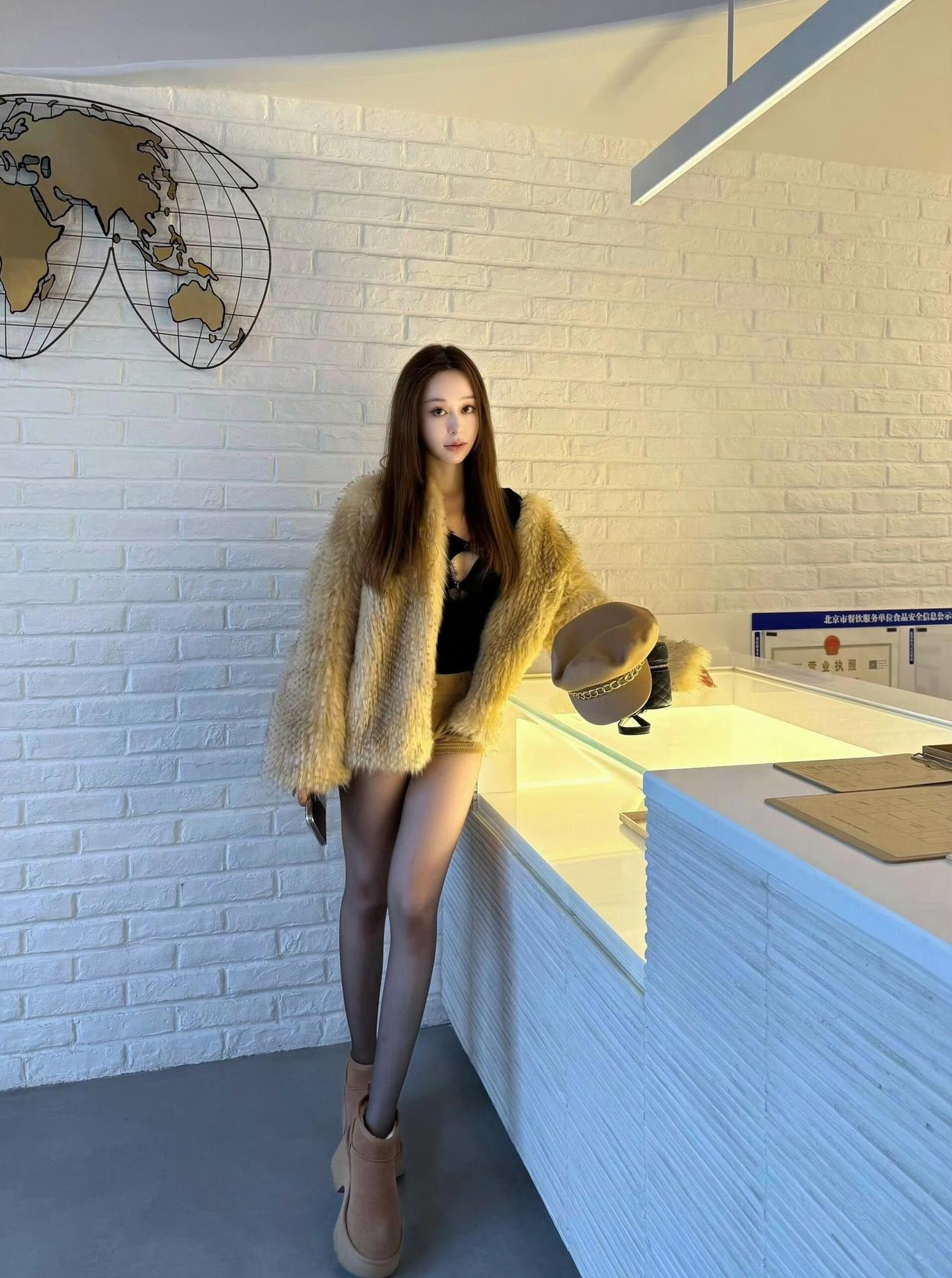 这套穿搭是贵气松弛的暖调冬日轻熟风,把奢华毛绒质感和休闲细节融合得很舒适。浅棕毛绒外套自带冬日贵气,宽松版型营造松弛氛围;内搭黑色V领+同色系短裤,露出腿部线条注入轻熟感。 搭配厚底短靴平衡了毛绒的厚重感,既保暖又显活力;黑色小包点缀,让暖调造型更显精致,不会过于单调。充分展现穿着者贵气松弛的轻熟魅力。秋冬毛绒绒穿搭 毛绒感穿搭