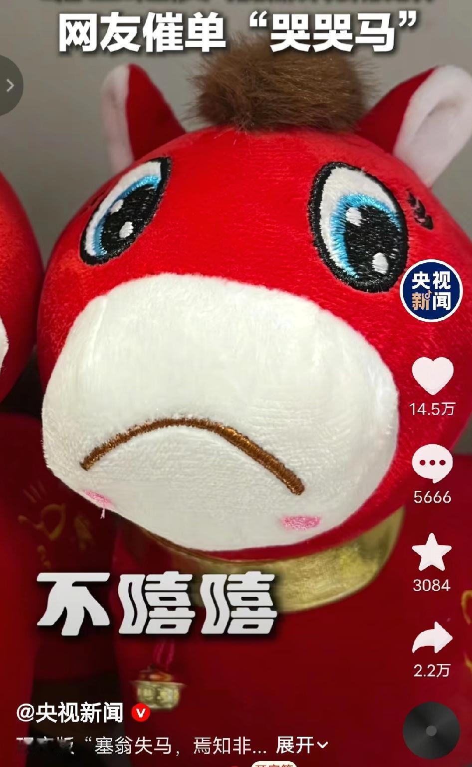火到央视新闻了!义乌,工人的一个疏忽反而让它火爆全网! 事情就发生在2026年1月。义乌老板娘张火清的工厂里,一位工人在缝制马年公仔时不小心走神,把一只公仔的嘴巴缝反了。这只本该"马上有钱"的笑脸公仔,瞬间变成了委屈巴巴的"哭哭脸"。 原本这只是个不起眼的小瑕疵,可能直接就当残次品处理了。可没想到,一位杭州的采购商偶然拿到了这只"哭哭马",觉得它又可爱又特别,就随手发到了网上。 谁知道,这条帖子就像长了翅膀一样火了!网友们纷纷被这只"委屈巴巴"的小马戳中了笑点,戏称它是"隐藏款",还调侃说"快乐不会消失,只会转移!" 一夜之间,"哭哭马"彻底火了! 老板娘张火清说,之前这款公仔一天也就卖个400来个。可"哭哭马"走红后,订单量直接爆炸式增长,线上线下的库存被一抢而空,现在的订单都已经排到2026年3月了。 你说这事巧不巧?本来是个要被淘汰的"次品",就因为一个无心的失误,反而成了爆款。 我跟你说,这事儿简直就是现实版的"塞翁失马,焉知非福"!你说这工人要是知道自己一个小小的走神,能给老板带来这么大的惊喜,估计得笑醒了吧? 这让我想起了一句话:有时候,生活里的一些小意外、小插曲,反而能带来意想不到的惊喜。 这也给咱们提了个醒,别总盯着那些"不完美",说不定换个角度看,它就是独一无二的"宝藏"呢。 现在,工厂里的"哭哭马"生产线已经从2条增加到了10多条,还顺势推出了钥匙扣、抱枕等各种周边产品,连海外的客商都组团来抢购。 更暖心的是,老板娘张火清说,虽然找不到最初那位"功臣"工人是谁,但她决定给全体工人加薪发奖金,让大家一起分享这份意外的红利。你看,这老板格局也打开了,懂得跟员工共享成果,这厂子能不火吗? 这小小的失误,不仅成就了一个爆款,还温暖了一群人,这波操作简直太漂亮了! 义乌哭哭马意外走红 马年公仔隐藏款 塞翁失马焉知非福 义乌小商品脑洞有多大 来源:央视新闻