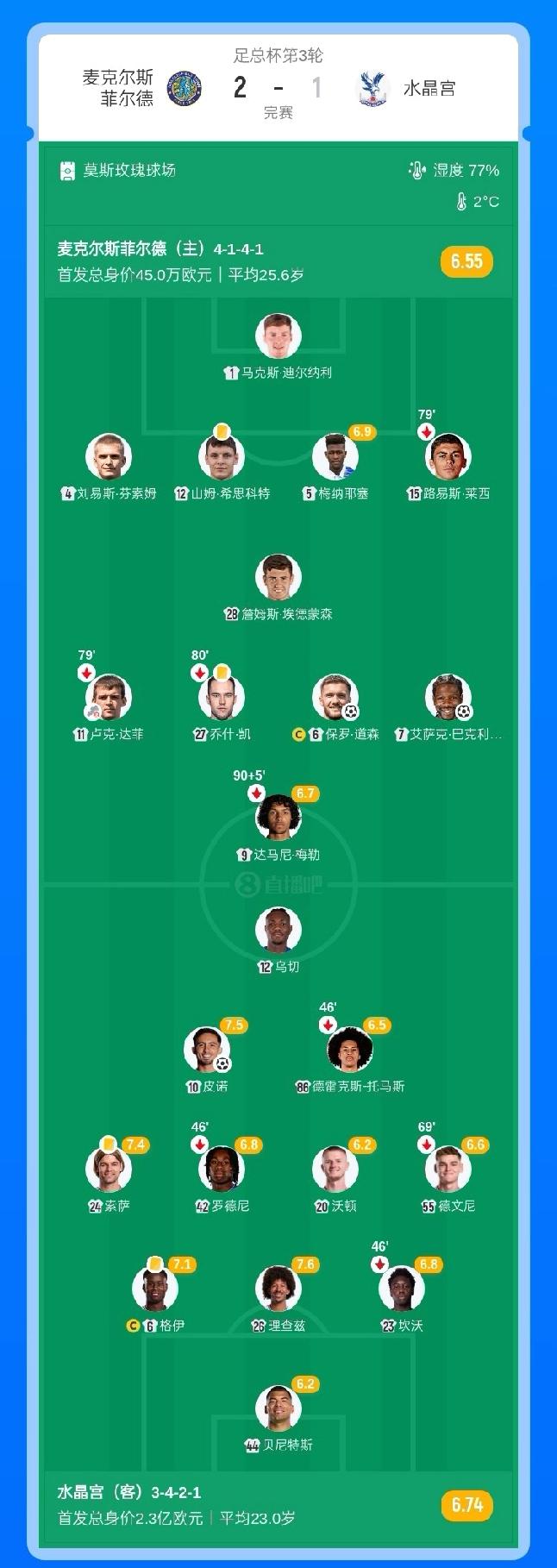 超级大冷门!第6级别球队2-1淘汰水晶宫,双方首发身价差超过500倍! 01月10日 英格兰足总杯第3轮,第6级别球队麦克尔斯菲尔德2-1击败卫冕冠军水晶宫,晋级足总杯第4轮,爆出惊天大冷门。水晶宫首发身价2.3亿欧,麦克尔斯菲尔德身价45万欧,双方的首发身价差超过511倍! 麦克尔斯菲尔德的主帅约翰·鲁尼,正是曼联名宿韦恩·鲁尼的弟弟。现年35岁的他执教的麦克尔斯菲尔德球队中,包括一名建筑工人、一名律师、一名前拳击冠军和一位前真人秀明星