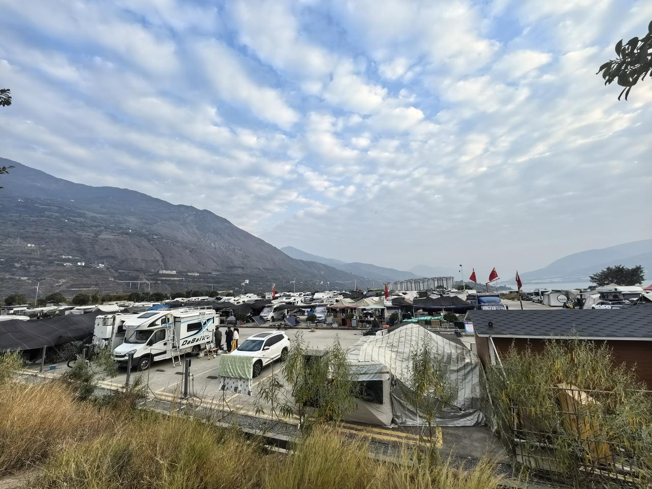 我们在巧家露营啦 昨天,我们从昭通出发,经都香高速、352国道、昭巧公路、248国道,3个多小时才到巧家。高速还好,国道路面还行,就是弯道太多,转弯、超车一定要小心。 我们直接导航到巧家政府露营地,遗憾的是没有位置,只好前往栗喉蜂虎房车营地,条件好的也没有位置,只好在3号营地靠江边找到一个空位,停了下来。我和爱人一起搭起车尾帐篷,算是安了个临时的家。 巧家的露营地还是很多的。我在网上捜了一下,有10几个,免费的、条件好的基本都没有位置了。据说还有收费的露营地,条件也还可以,不知有没有位置,我们只是计划在这里待两天就往下一站走。 露营地条件还是很好的。各种配套设施设备完备,有水有电有厕所,还设有管理室和公安保卫室。做生意的人也很多,有当地的流动商贩,也有过冬老人在这里顺便做起了生意,开早餐店的、小商店的、户外用品店的、理发店的……露营地里面停满了来自全国各地的各型车辆,甚至还有三轮车。各式帐篷也搭得很多,各有特色。我们在里面转了转,有聊天的、打牌的、唱歌的、直播的,还很热闹。看见我们面孔陌生,不少人主动与我们打招呼,还碰见不少四川老乡,都很热情。 我顺便问了一下,大家对这里的感受,都说很好。说这里气候好,空气好,环境好,待在这里很舒服。有的已经待了4个月了,更多的表示,要在巧家过年。 巧家的确很温暖。今天的气温在7一一16度,明后天还要升温到20度。白天在阳光下,感觉还很热。早晚有些凉,但也感觉不到寒意。 今天,我们在金沙江边漫步,环境是确实好。沿江大道很宽阔,两边绿化很到位。大道下面的绿道和草坪是最棒的,沿江漫步,欣赏着清澈的江水,和沿岸的花草,心情舒畅。走累了,就在草坪上或坐或躺,都是很爽的。江边钓鱼的人也很多,这里面的鱼质应该不错。 昨天和今天,都有不少车辆进来找位置,都失望而去。看来,前来巧家过冬的人还不少。我们计划在巧家待几天,在周边转转,然后按计划再进行下一个行程。