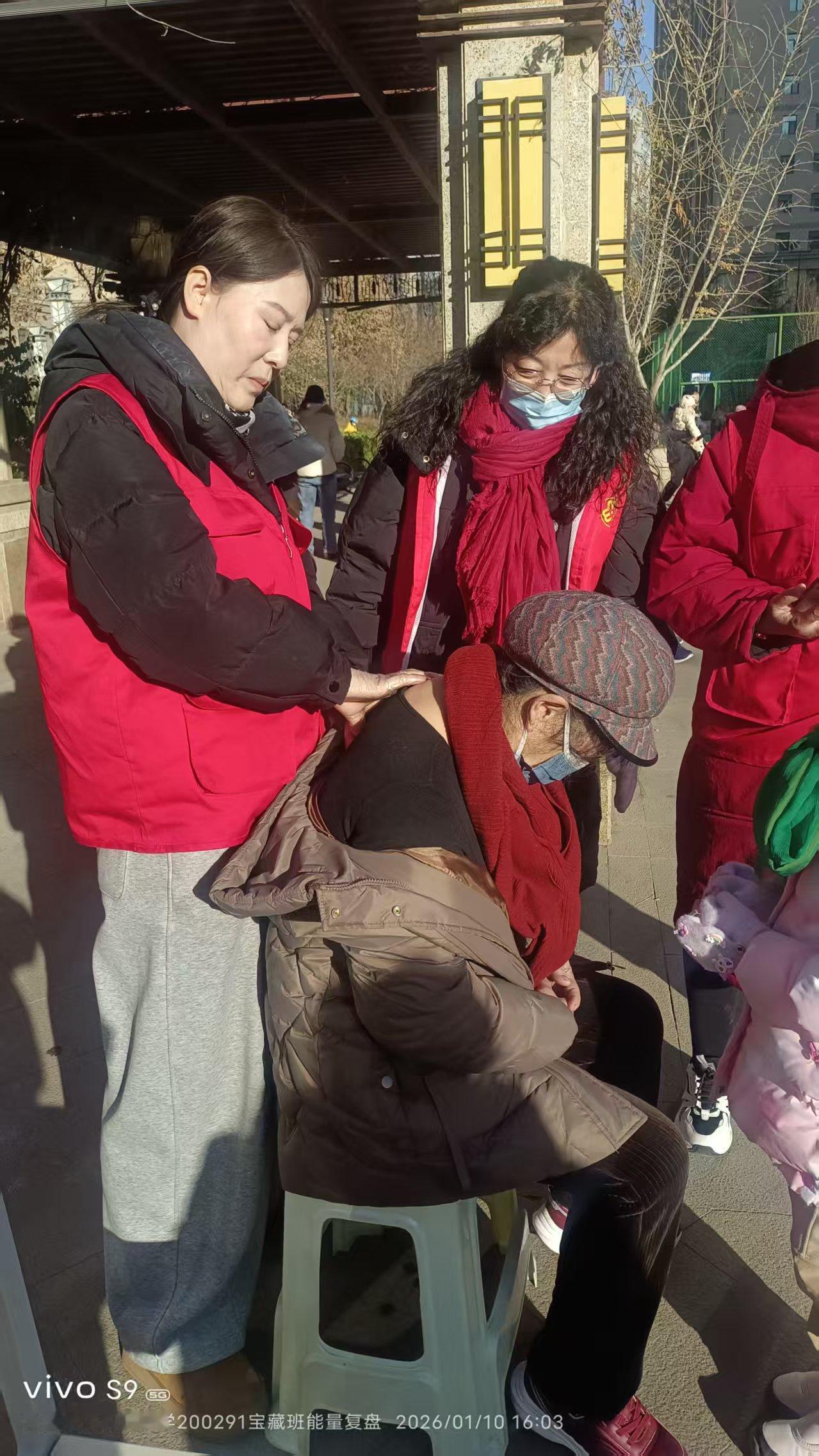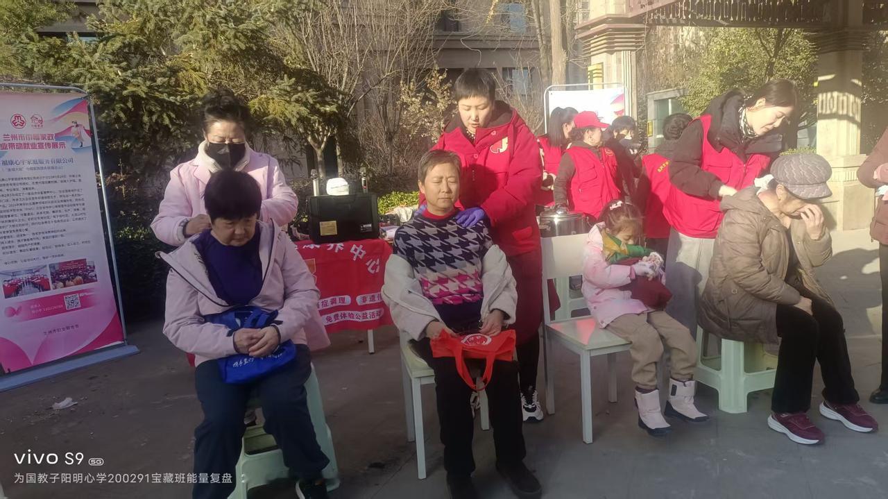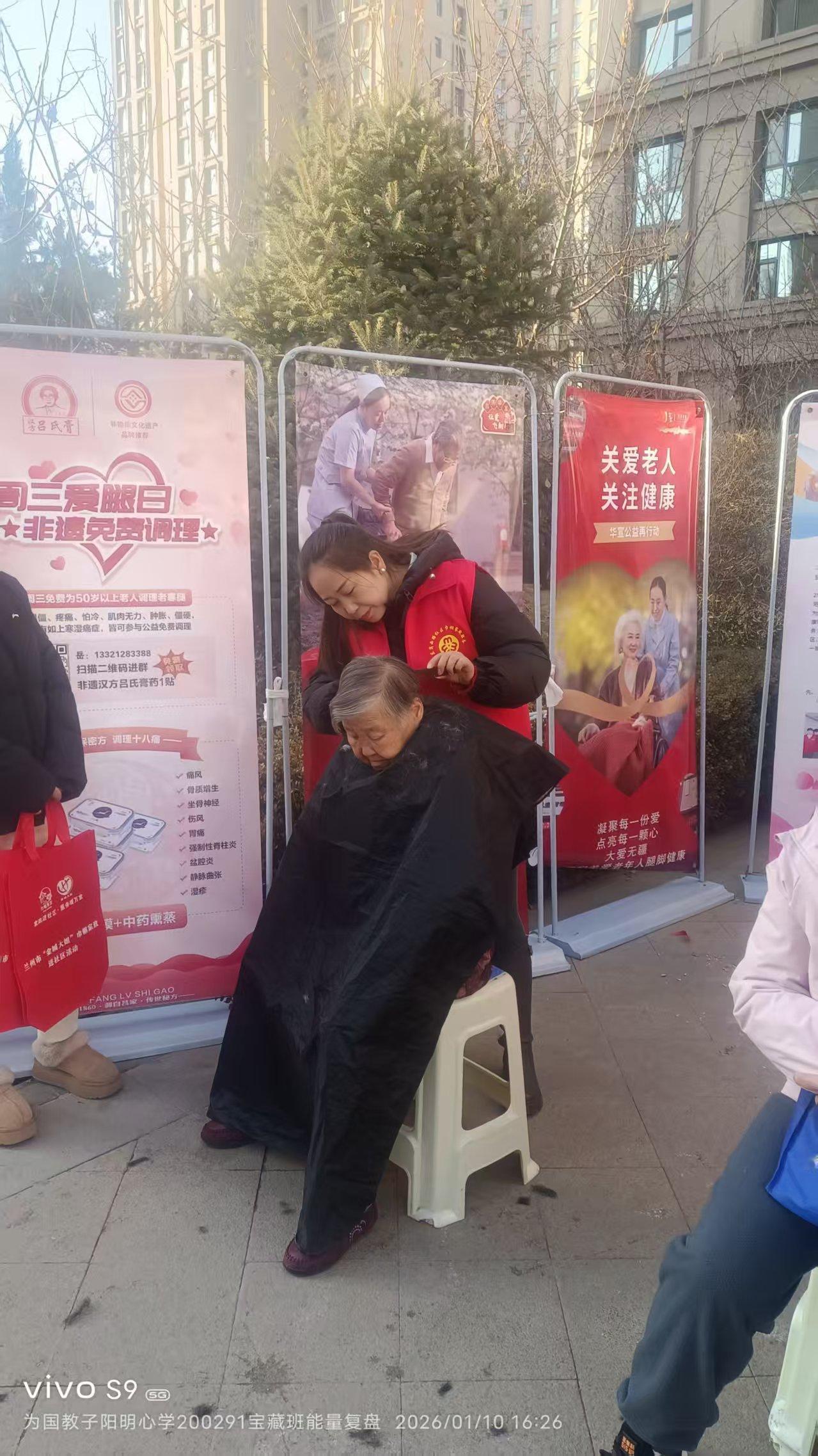 寒冬里的一把火——— 吕济华宣爱之队社区献爱心 1月9日兰州最低气温9度,街头寒气逼人。下午14时许阳光给市区带来些许温暖,东岗欣欣嘉园东区悬挂着横幅地上摆着宣传牌,原来是吕济华宣爱之队来到该社区开展公益服务。 社区居民闻讯陆续来到活动地点。而吕济华宣爱之队的岳小平、秦风珍,张凡名,孙红喜,李秀芬,程爱平,康小琴,张红丽8人,也做好了准备事宜并迅速进入“角色”。她们有的给老人按摩腰腿,有的给老人理发。 吕济华宣爱之队的8名队员,都怀有真诚爱心。她们一边给老人按摩、理发,一边和老人拉家常聊天。一位80多岁的老奶奶对记者讲,年龄大了腰腿经常不舒服,今天经过她们按摩和贴了药膏,腰腿感觉舒服多了。另一位老人讲头早长了可天气冷,一直懒得出去理发,今天在楼下就理了发,真的非常感谢她们,天气这么冷还来社区献爱心。 东岗吕济华宣健康管理中心负责人岳小平告诉记者,她是这次活动的组织者。她们吕继华宣爱之队成员,经常到社区给社区居民宣传健康知识。这次带来了吕济华宣一贴灵膏药,老人们使用后感觉都不错。我们东岗吕济华宣健康管理中心在东岗立交桥、四路终点站对面。我们推出了多项针对老人们的优惠贴心服务,随时欢迎社区居民和老人们来中心调理身体。