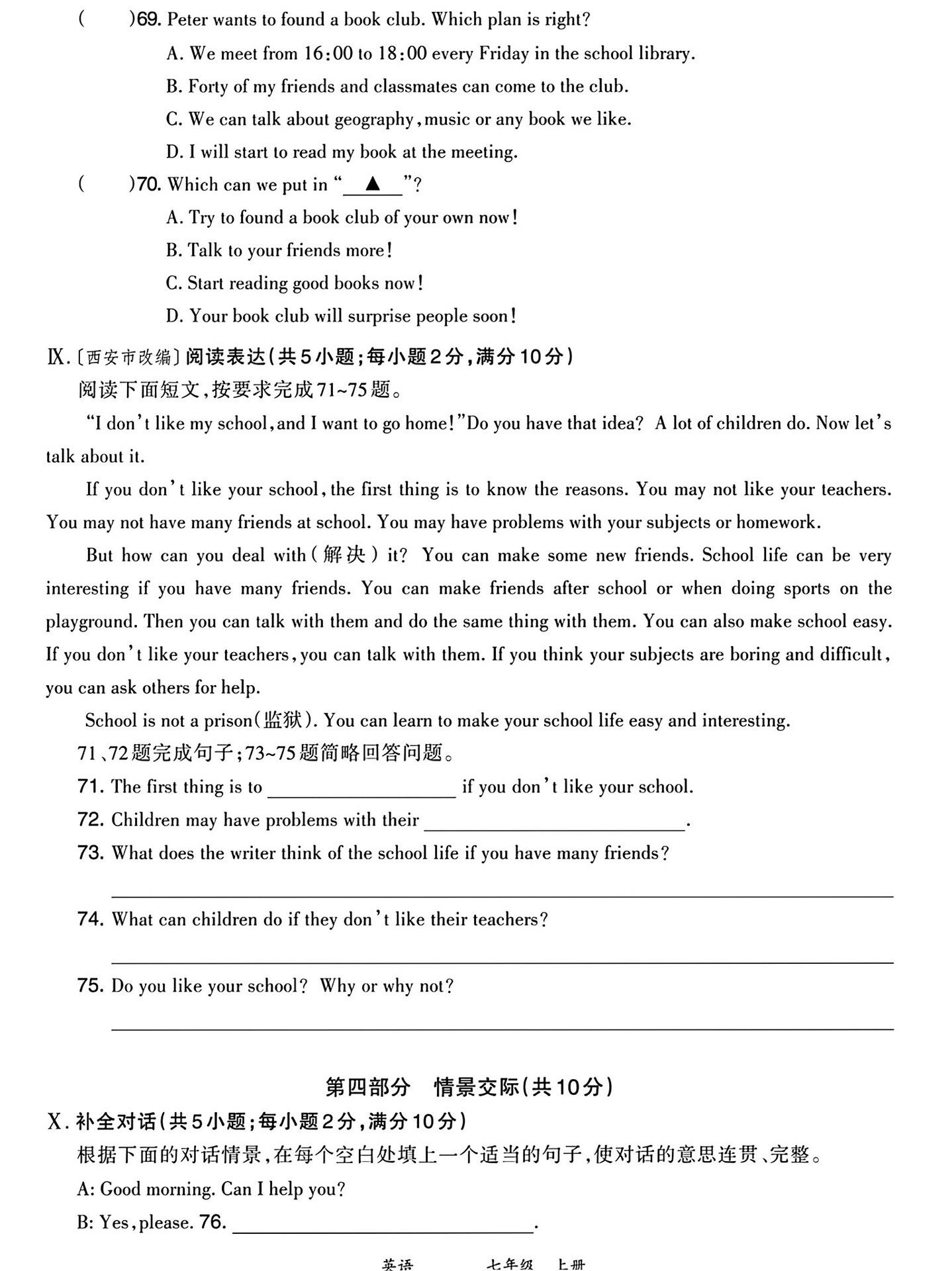 26年七年级上册语文期末考试真题检测卷。七年级上册语文期末考试真题检测...