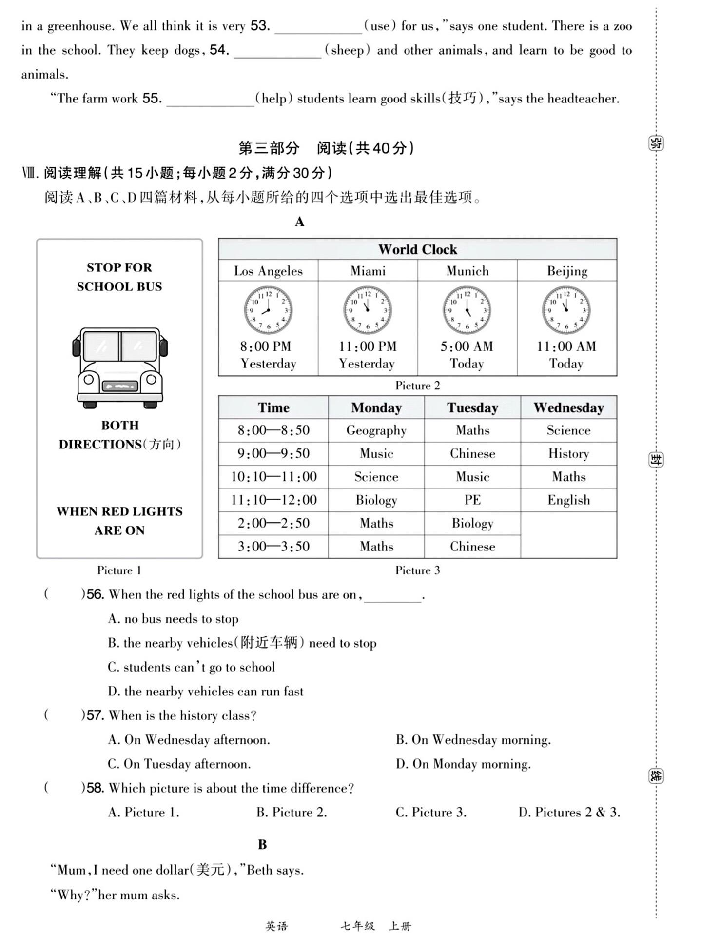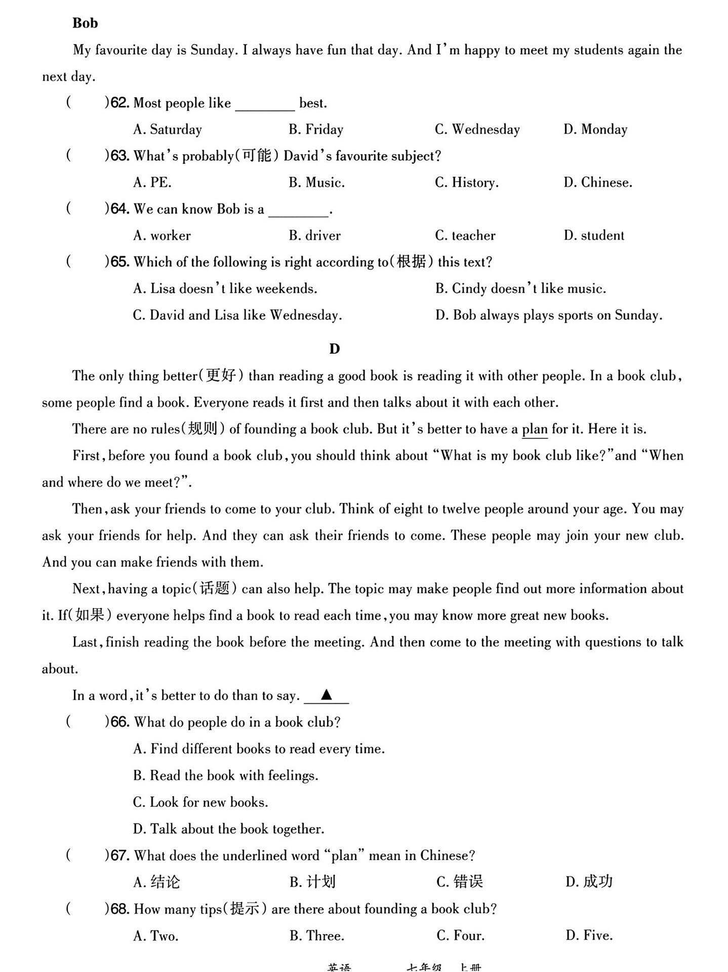 2025年新七年级上册期末阅读理解专项。