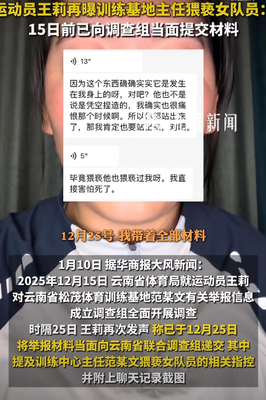亚运三金冠军得主仍然难逃被“霸凌”的命运,这件事暴露出来的问题远没那么简单。 虽然亚运三金得主王莉举报他们训练基地主任范继文这个事情已经得到了重视,范继文目前也已经被免职立案调查处理。但是这背后王莉所遭受的对待,以及为了举报所付出的努力是我们一般人不敢想象的。 比如说被自愿退役,又比如说正规渠道申诉3个月无果,只能被迫网络举报;并且举报后居然遭基地谎报“失踪”,导致警方多次核查其行踪。提交的范继文猥亵队员的聊天记录至今仍在核查中等。 难道这只是个象吗?我相信绝对不是,王莉作为一个三金得主,绝对算得上是知名运动员了,她都尚且遭受到如此待遇,那其他名不见经传的普通运动员境地可想而知,这次事件给我们敲响了警钟,各地的训练基地都应该大力核查一下,看看是否有类似现象发生,不然他们全心全意想为国争光,却不能得到公正待遇,那该多寒心啊! 另外我有注意到官方通报里面说的是“情况基本属实”,什么叫基本属实啊?属实就是属实,不属实就是不属实,不要用中国文化博大精深来搞这种模棱俩可的东西,该怎么处理就怎么处理才是!