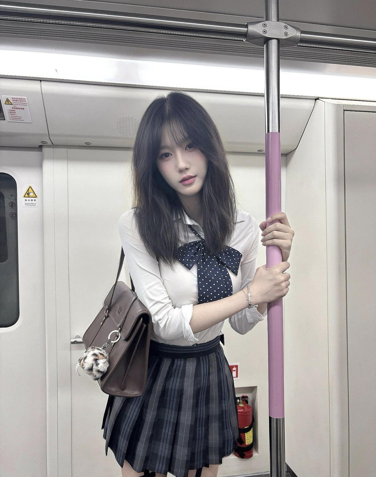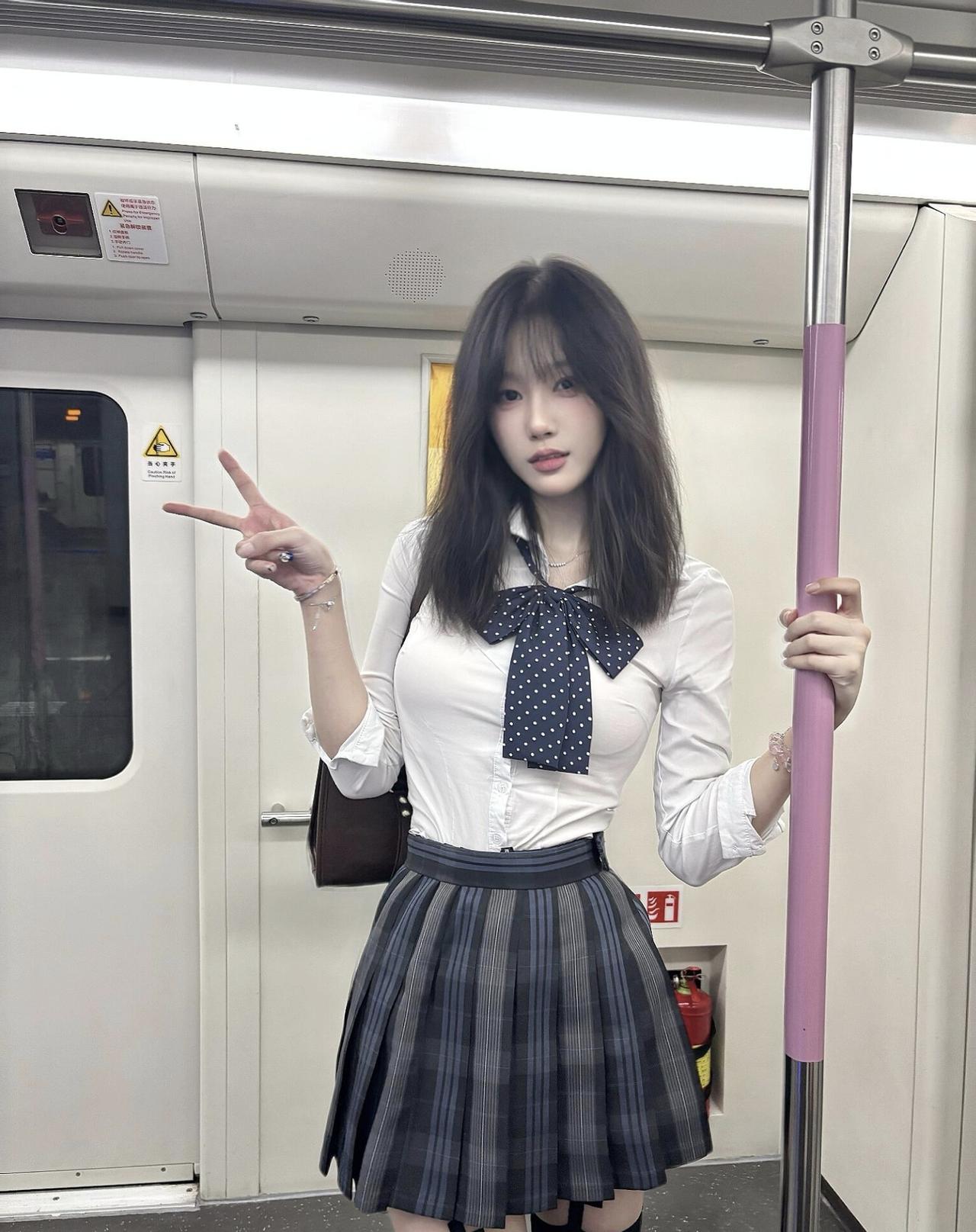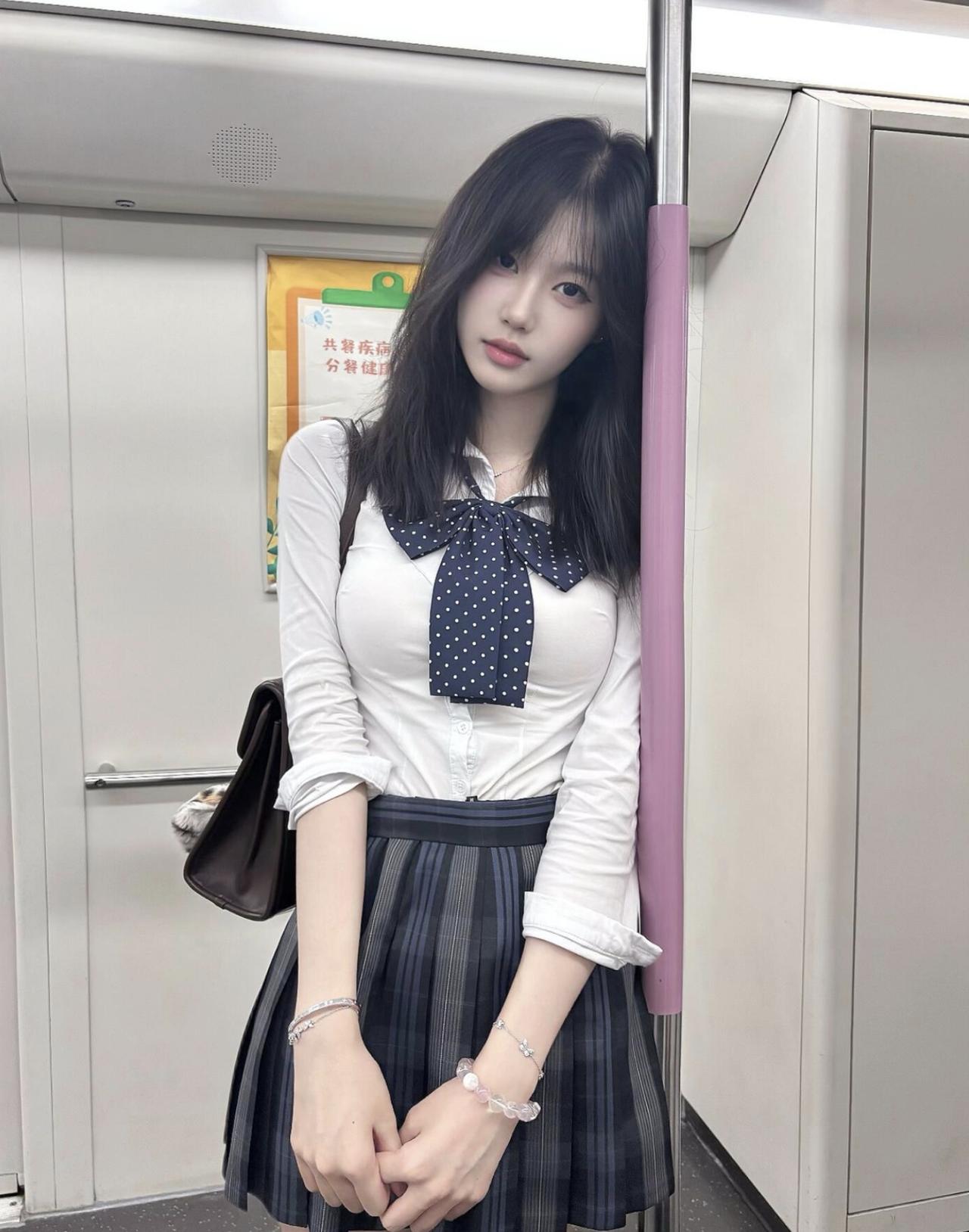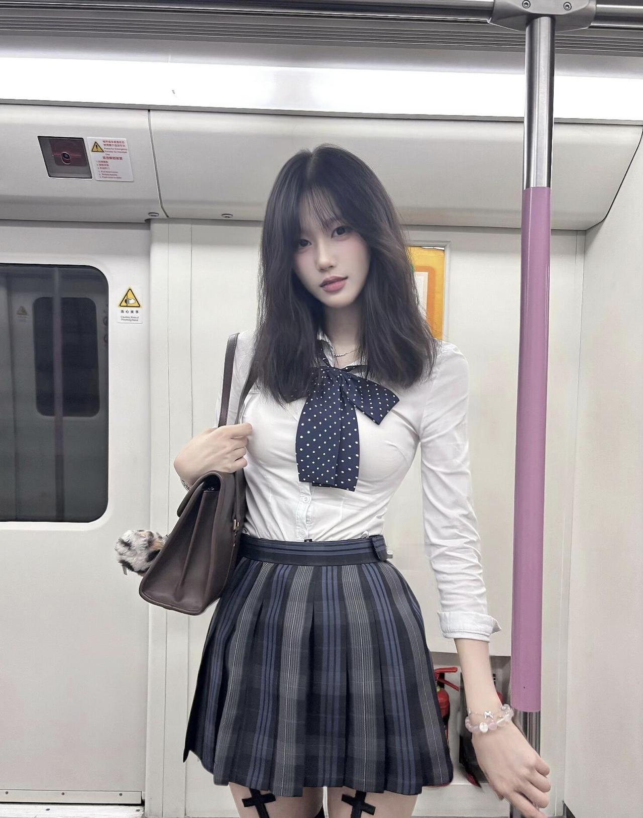 地铁里的通勤碎片,jk穿搭和城市晚风撞个满怀~