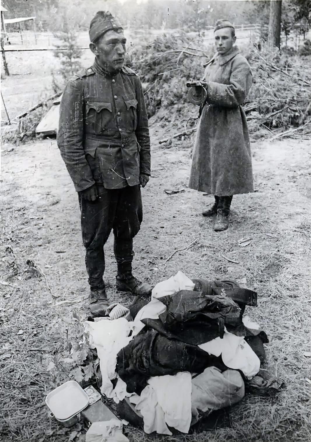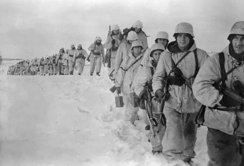 二战东线战场真实历史留影! 图一:苏军S-2重装坦克正在行进中,该装甲战车上搭载着步兵。该区域应该已被苏军完全掌控,不然士兵们不会如此惬意。(时间地点不详) 图二:1942年7月,即将奔赴斯大林格勒前线的纳粹德国国防军第6集团军。(地点不详)不到一年,该集团军便全军覆灭了,集团军司令保卢斯亦向苏军缴械投降了。 图三:1942年9月,苏军侦察兵于捕获一名携带赃物的匈牙利士兵。其应该是在先前战斗间隙参与了洗劫当地民众的行动。(地点不详) 图四:1941年,巴巴罗萨行动初期,德军在一马平川的平原上快速推进,一名苏军女战士不幸被俘。(地点不详) 图五:苏联境内,德军正在通过铁路平板车运送自行火炮、自行榴弹炮及半履带卡车至前线阵地。(时间地点不详) 图六:1942年12月,斯大林格勒战役期间,苏军王牌狙击手瓦西里·扎伊采夫(左)与其他装备莫辛-纳甘M1891/30步枪的苏军狙击手留下的摆拍照。 整个斯大林格勒战役期间,扎伊采夫仅凭一人便击毙了225名德军,正因如此其荣获了“苏联英雄”称号。该合照加上其光荣事迹极大地提高了苏军士气,增强了斯大林格勒军民守城决心。 图七:‌1941年,苏军前期装备的马拖式马克沁重机枪车。该装备的确简陋,有种一战的感觉。(地点不详) 图八:德军88毫米Flak 18高射炮在发射后正处于全后坐状态。(时间地点不详) 图九:匈牙利布达佩斯,德军士兵正在游览名胜古迹。(时间不详) 图十:1941年冬,德军正在雪地里艰难行进。(地点不详)德军闪击苏军的第一个年头,随着寒冬的到来及苏军阻击力度的不断加强,德军推进速度开始减慢,在西欧战场屡试不爽的“闪电战”似乎在广袤的苏联境内开始失效。 图十一:1943年春,困守战壕里的德军士兵,他们脸上更多的是困倦、恐惧与无奈。苏德战争初期洋溢着的笑容不知什么时候已从脸颊上彻底消失了。 图十二:1941年,基辅战役期间,德军士兵正在匍匐警戒,预备随时进击。老照片 二战 二战苏联战场 结语:欢迎朋友们关注、点赞,评论区发表宝贵观点与建议,并‬将来自己‬感兴趣‬的‬历史‬事件‬留言‬下来‬。我‬将尽力‬搜集‬资料‬,整理成篇,与‬您‬共勉‬! 您的慷慨支持是我持续创作更新的永续动力。文中常有时间地点不详或地名无法译出之状况,若您有案可查,请帮忙斧正补充!