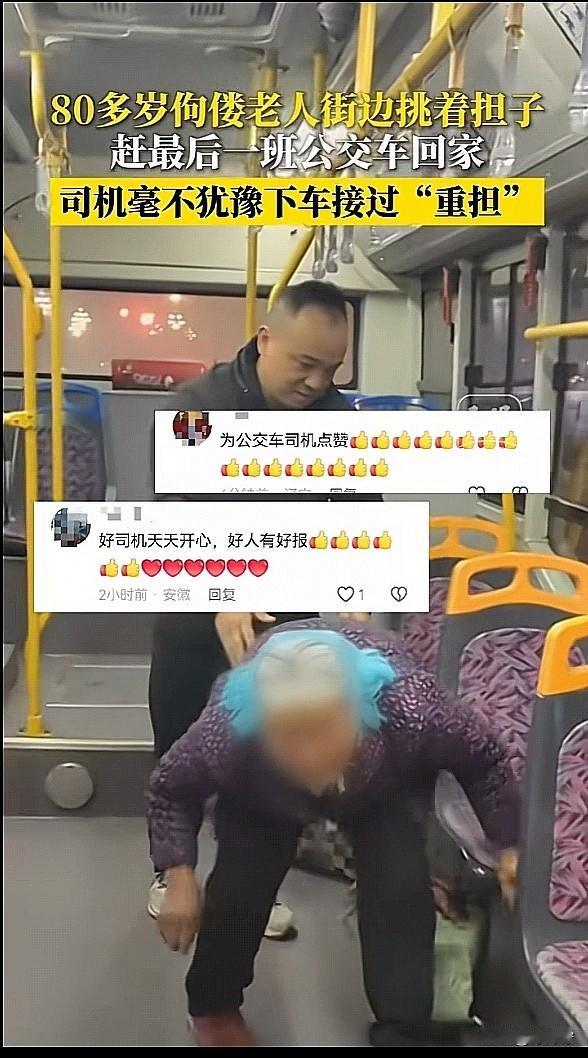 谁能想到?80岁老人挑着担子赶末班车,公交司机这一接,暖了整座城! 贵州施秉街头,老人挑着担子赶最后一班公交,背驼得厉害,走一步晃三下。司机师傅看到后,直接下车接过担子,扶着老人慢慢上车,直到老人安稳坐好,才回到驾驶位。 网友们看到这一幕,纷纷留言:“为司机师傅点赞”“好人好事应该多宣传,中华美德才能代代传”。 正能量 暖心瞬间