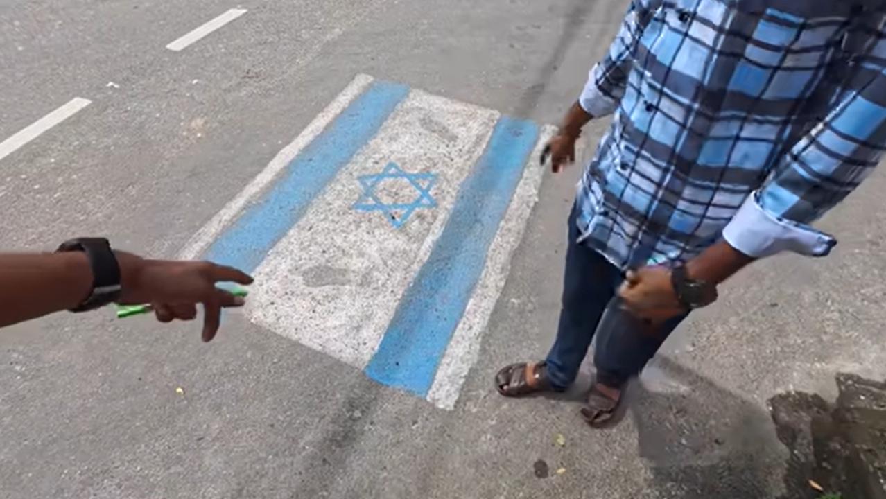孟加拉l国城市巴里赛尔的街上他们把以色列的国旗画在下面,这样就可以天天踩它了。想不到东南亚的小国还有这么出力。