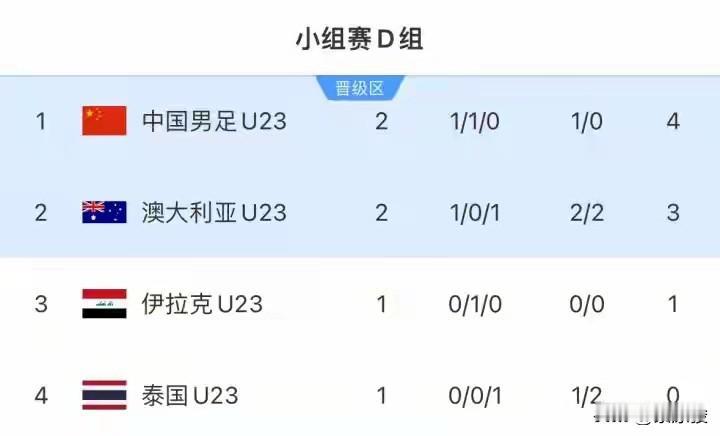 U23国足1-0击败澳大利亚队,小组出线概率大增。下一场,中国队对阵泰国队。 印象中多年来中国各级国家足球队很少能击败澳大利亚队,打平就不错了。 今天中国球员上半场打得有点拘谨,场面也处于劣势,但好在1-0领先。 下半场,澳大利亚加快节奏,但中国队节奏也迅速跟上,以快制快,反而给澳大利亚球门造成一定威胁。 比赛进入尾声,澳大利亚队进了一球,但经过视频裁判检查,澳大利亚进攻球员对中国队守门员犯规,进球无效。最终中国队1-0击败劲敌澳大利亚队,也彻底击碎了澳大利亚队想从中国队身上全取3分的美梦。 目前中国U23在在亚洲杯上一平一胜积4分,暂列第一。之前第一场,中国队0-0逼平小组另一个劲敌伊拉克队。 中国队下一个小组对手是泰国队。中国队,加油!
