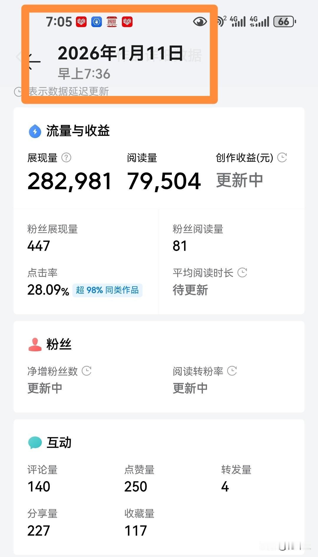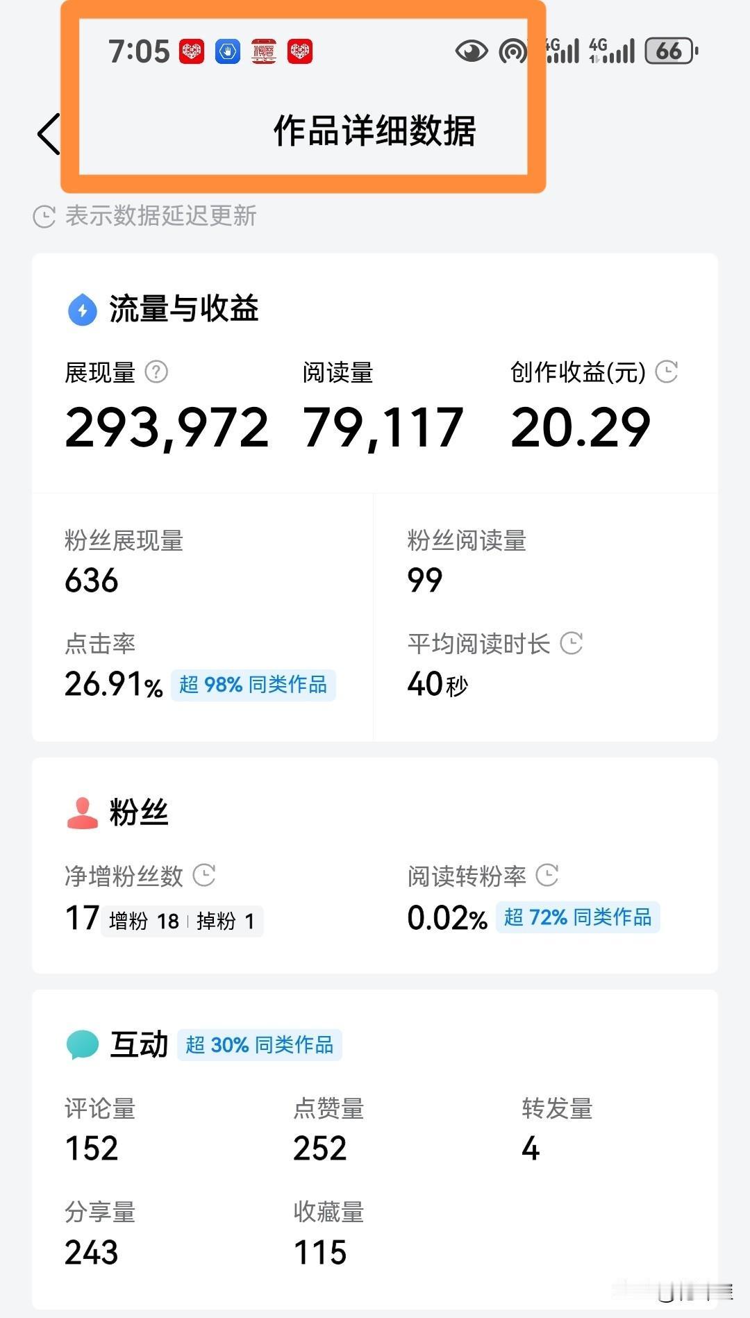 阅读量被偷? 有意思了,前天我写了篇文章,官方推送很积极,在展现量28.2万时,阅读量就7.95万,我处于好奇,看什么时候突破8万,就截图了,昨天晚上就突破8万阅读量了。 可是今天早晨回复评论,下面显示是7.9万,我好奇点开详细数据,把我逗乐了,数据显示,展现量29.3,阅读量是7.91万。 从28.2万到29.3万,增加了1.1万的展现量,阅读量却少了400+,见过评论量减少的,没有见过阅读量减少的?不知道友友们遇到过这种情况吗? 单日阅读量 2万人正在阅读