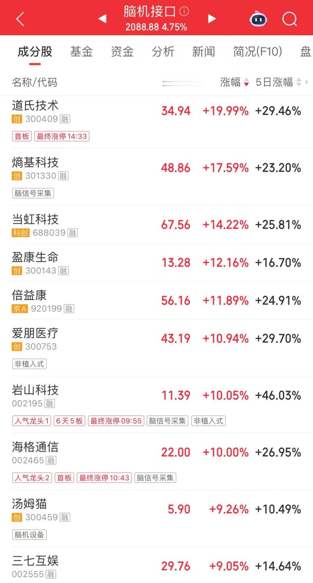 脑机接口板块午后走强,消息面上迎来利好。脑机交互与人机共融海河实验室官微12日消息,天津大学脑机交互与人机共融海河实验室团队聚焦无创脑机接口领域,持续推动科技创新与产业化落地。在航空航天领域,设计开发五代空间站在轨脑机交互系统,完成人类首次“太空脑机接口实验”。