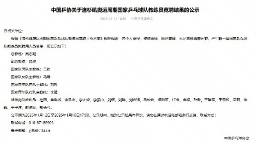 中国乒协重磅官宣!正式公布洛杉矶奥运周期教练班子人选,马琳连任国乒女队主教练。 马琳,男,45岁,曾任刘诗雯、陈梦等运动员主管教练员,作为巴黎奥运周期国家队女队主教练带队获得2024年巴黎奥运会女团、女单冠军,2023年德班世乒赛女单、女双冠军,2024年釜山团体世乒赛女团冠军,2025年多哈世乒赛女单、女双冠军等成绩。