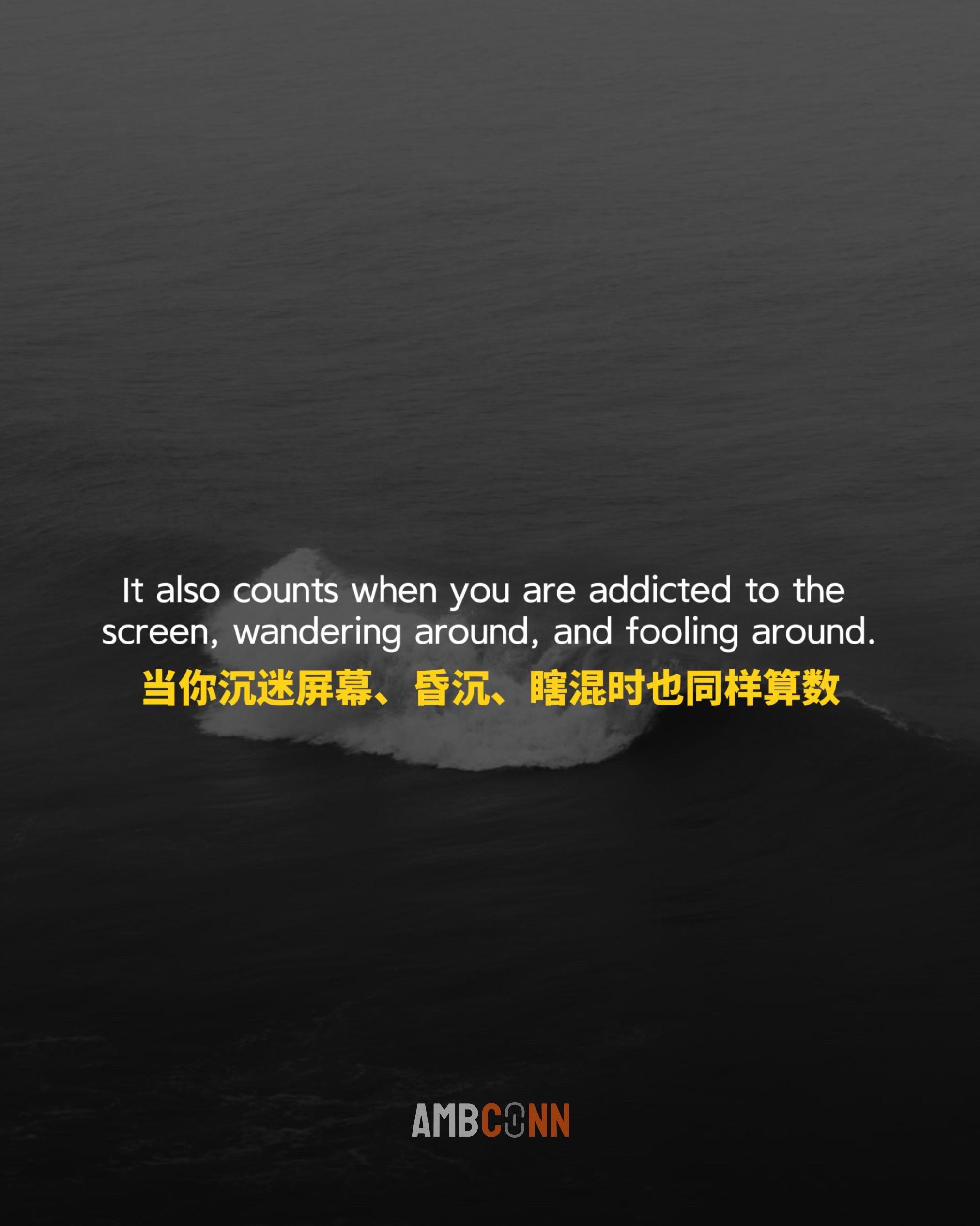 人总会犯一个错误就是:认为生活中自己该算数的事,才算数,当你上课、看书、学习、工作时算数,当你沉迷屏幕、闲逛、瞎混时也同样算数,这些事要么让你靠近目标,要么把你越推越远。野心互联