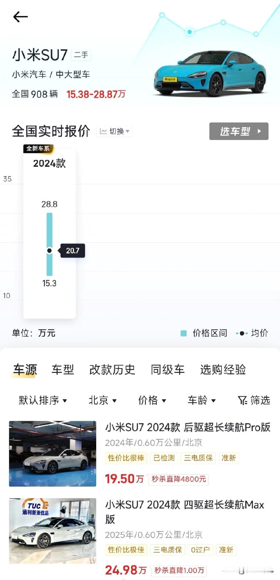 最近,网上看到不少宣称小米汽车二手车价格“断崖下跌”。看着那些夸张的表述,什么13万、14万就能买到原版原漆,一万公里的小米SU7 Max,实在令人哭笑不得。别的汽车价格跌去一半都属正常,而小米汽车仅跌了几千块,就被传成价格崩盘,这双标玩得可真是娴熟!