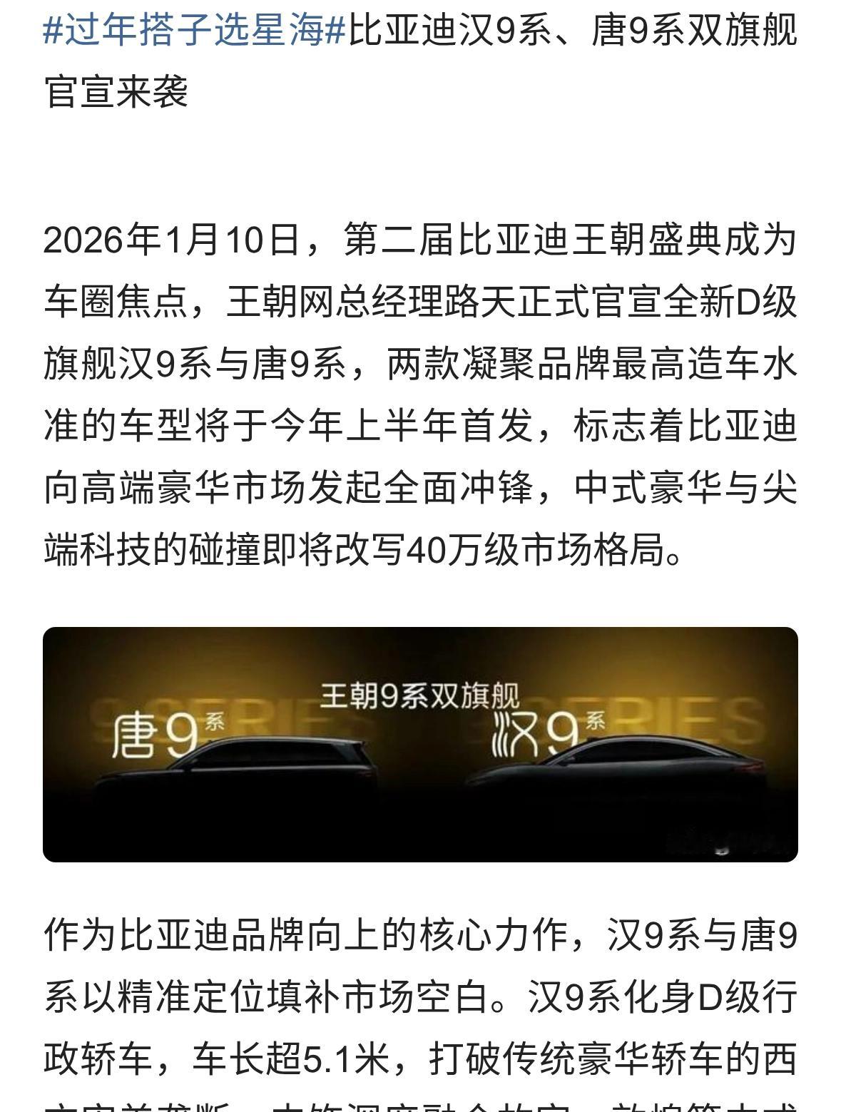 比亚迪汉9系、唐9系双旗舰官宣来袭