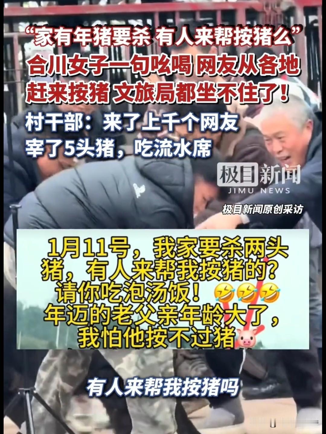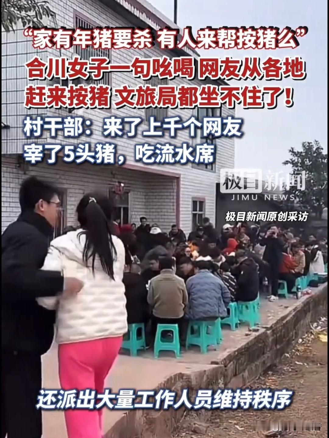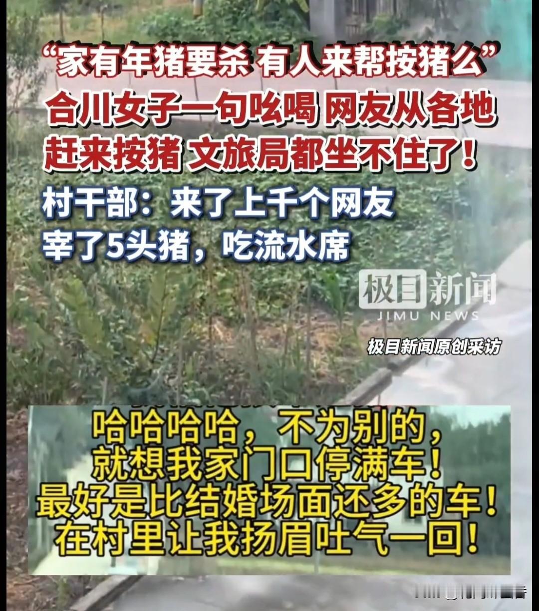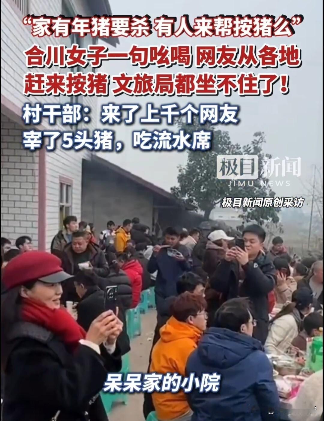 合川文旅杀疯了! 凌晨2点接呆呆流量, 日更10条顶一年 官方网感天花板 合川女生呆呆求助杀年猪引数千人奔赴,合川文旅的反应堪称教科书级,凌晨2点多就摸黑上门,精准接住这波泼天富贵。 他们不止帮呆呆兜底撑场子,协调物资加送两头猪保障刨猪汤,还现场派发钓鱼城景区门票,顺势宣传合川文旅资源。一改往日官号沉闷画风,当天连发近10条视频,从现场实况到民俗推介无缝衔接,一天工作量直接顶过去一整年。 从前怕酒香巷子深,如今官方主动下场借势,既解了普通人的接待难题,又精准完成流量转化,这份敏锐预判力和高效执行力,彻底打破大众对官方账号的刻板印象。 网友纷纷点赞“这才是接地气的文旅操作”“会抓流量更会办实事”。这种懂流量、肯实干的官方,活该出圈!你被合川文旅的操作圈粉了吗?欢迎评论区聊聊…合川平姐 合川打卡胜地 合川直播大场 合川网咖 合川排队王 来合川旅游 合川牛