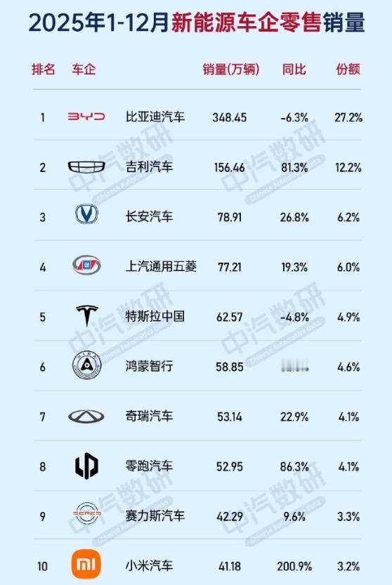 今年新能源车销量超过百万的只有吉利和比亚迪两家,如果明年鸿蒙智行能够顺利实现百万销量目标,那就是国内市场前三了。 而且鸿蒙智行的均价三十多万,其营收肯定要超过吉利,成为老二了。 什么,你说零跑的销量目标也是超过百万? 没错,但是零跑这个销量目标是全球的,海外市场预计会占到20%左右,国内还没有那么强。