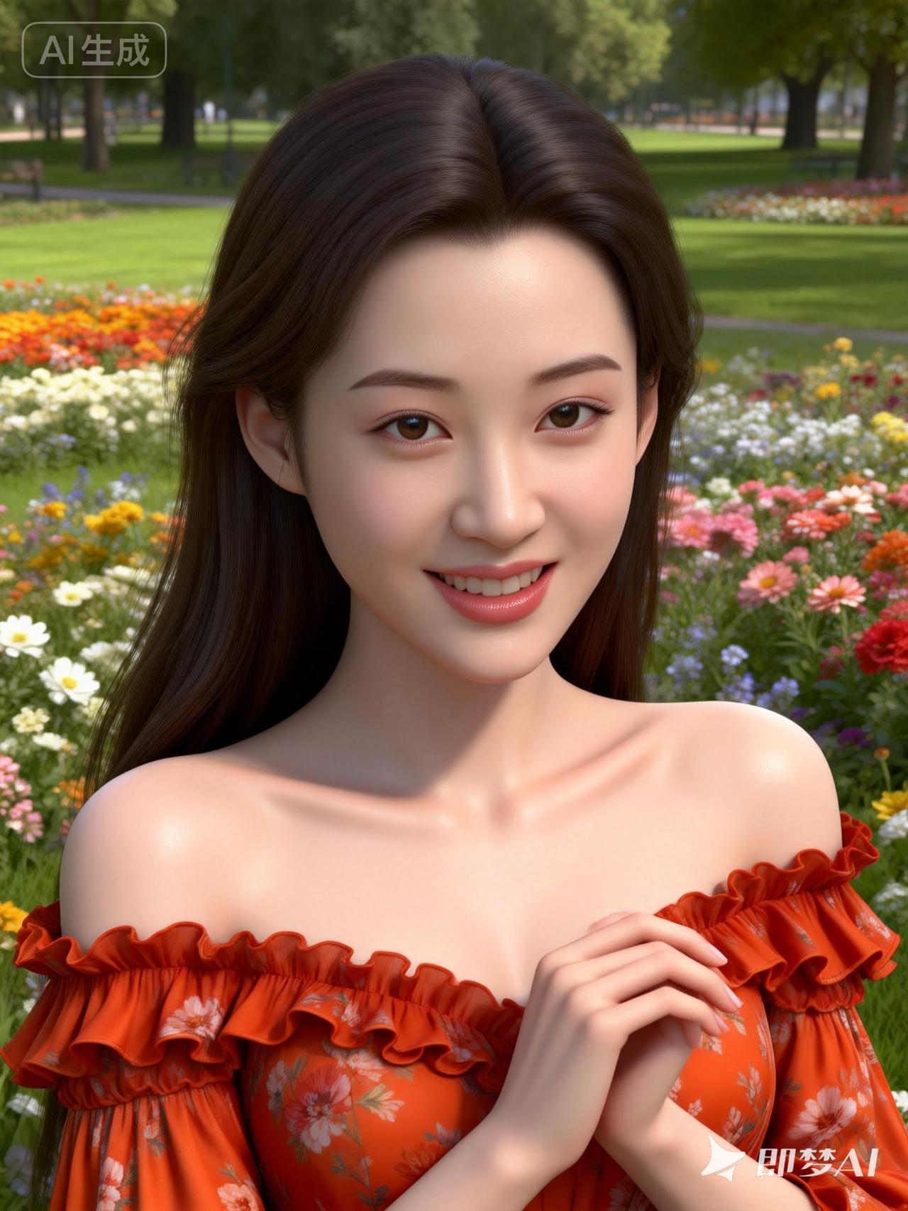 阳光明媚的公园里,甜美少女与花海相映成趣🌸🌼