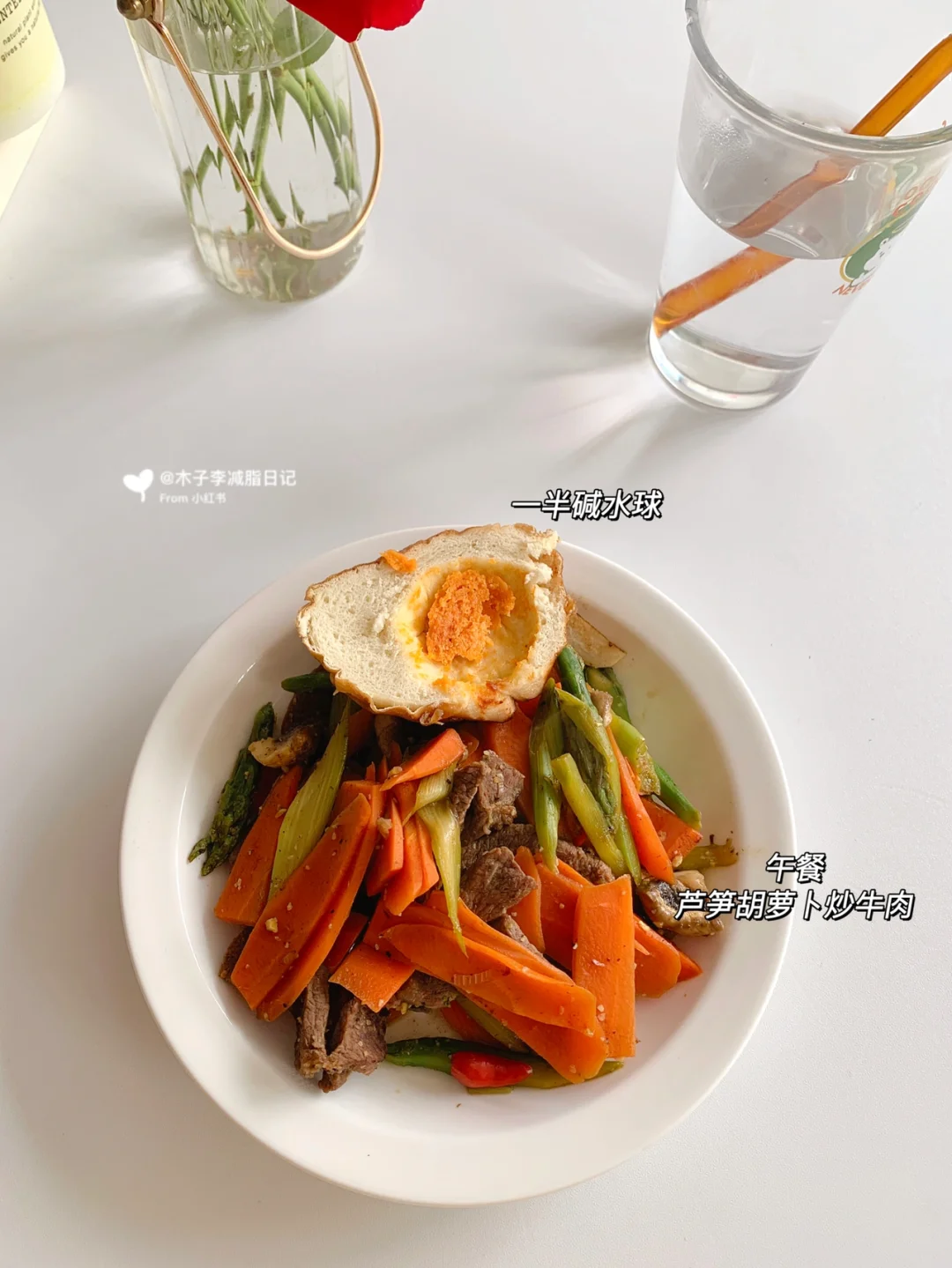 🥣午餐:芦笋胡萝卜炒牛肉|碱水
