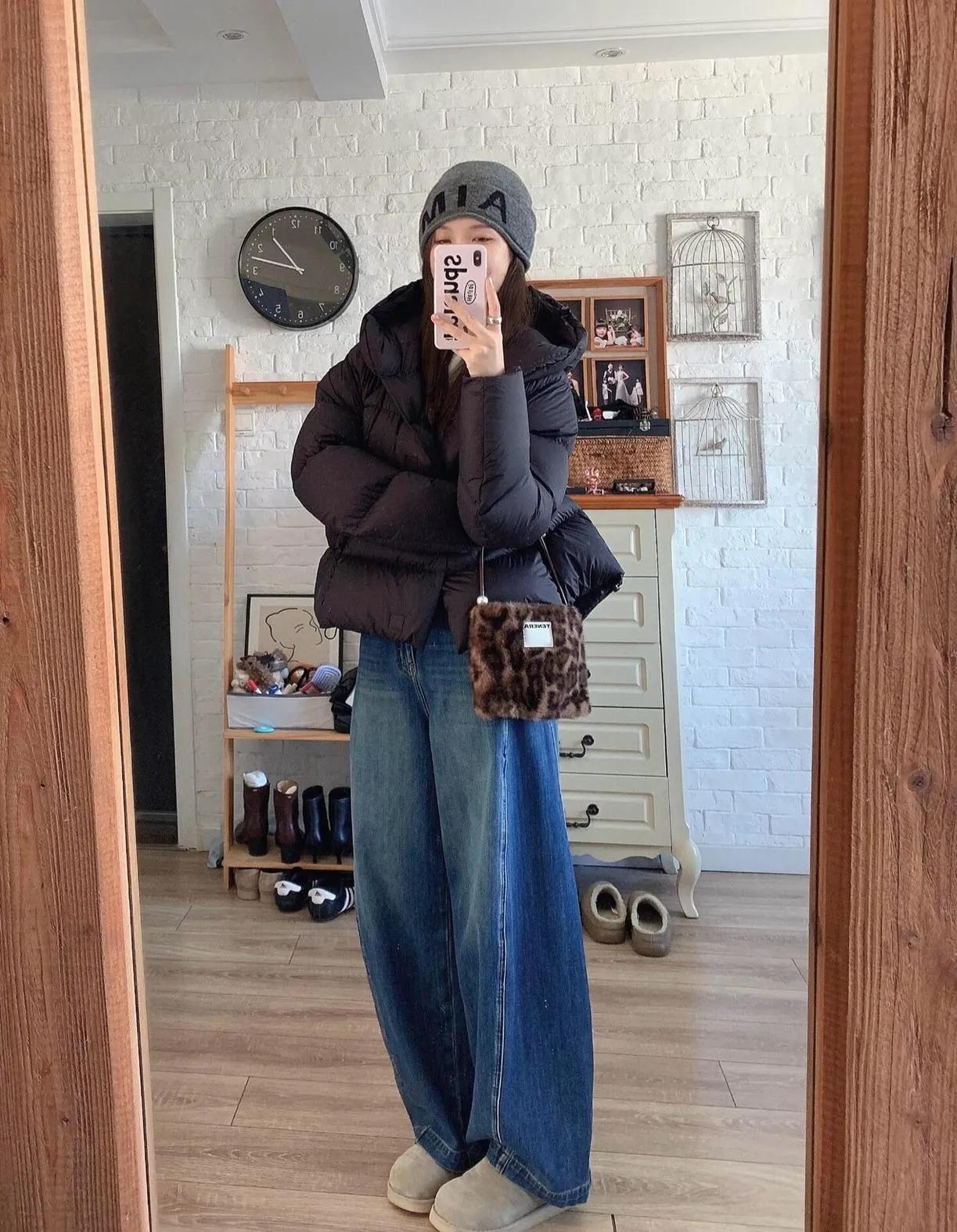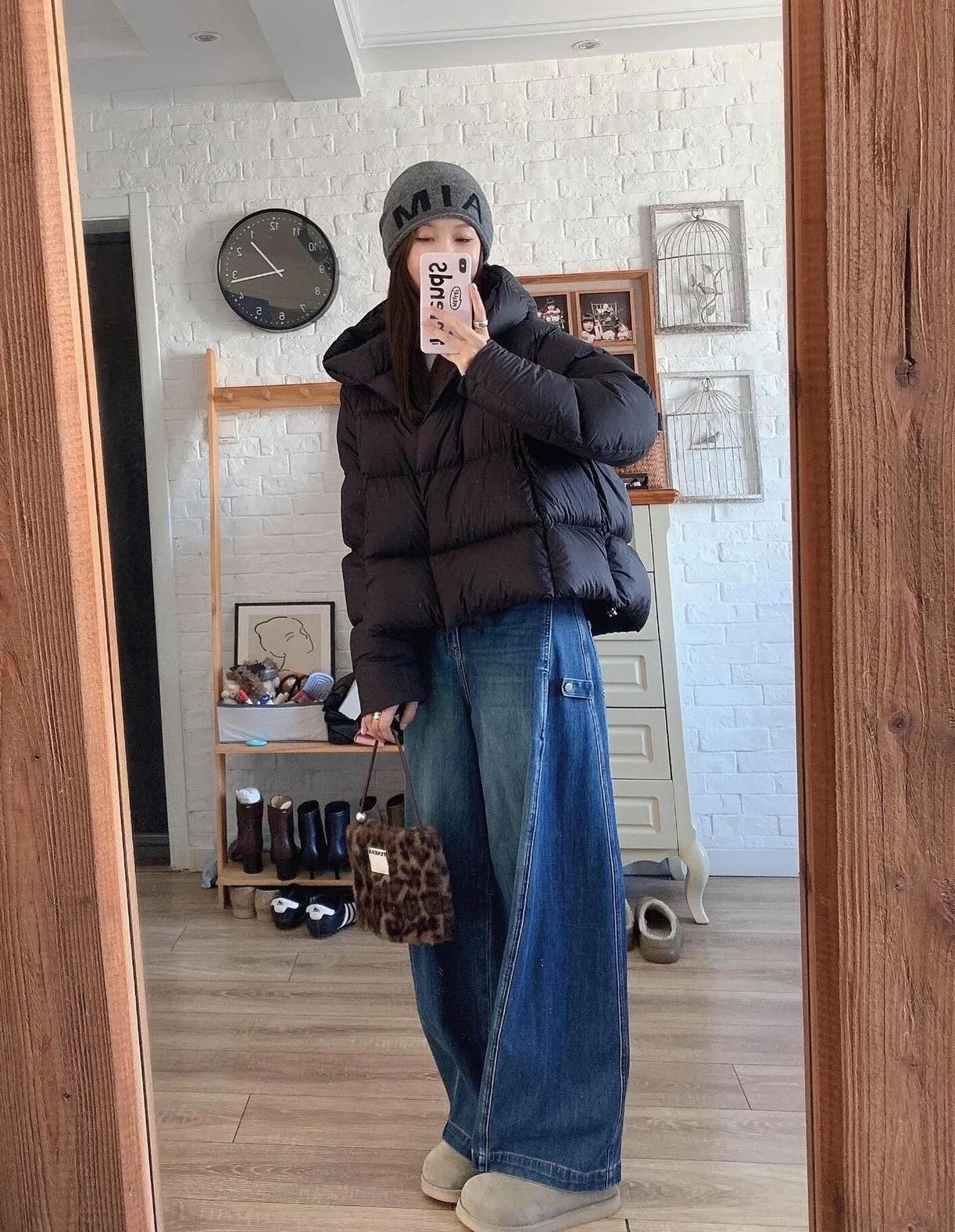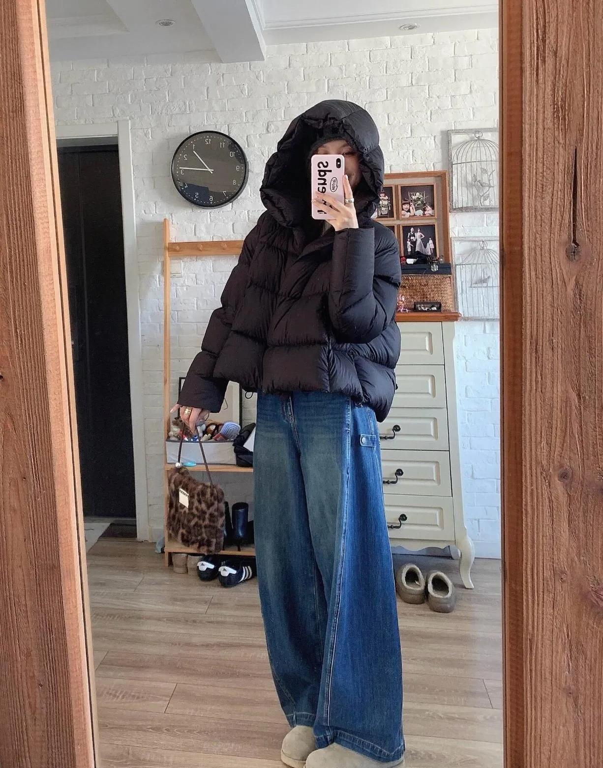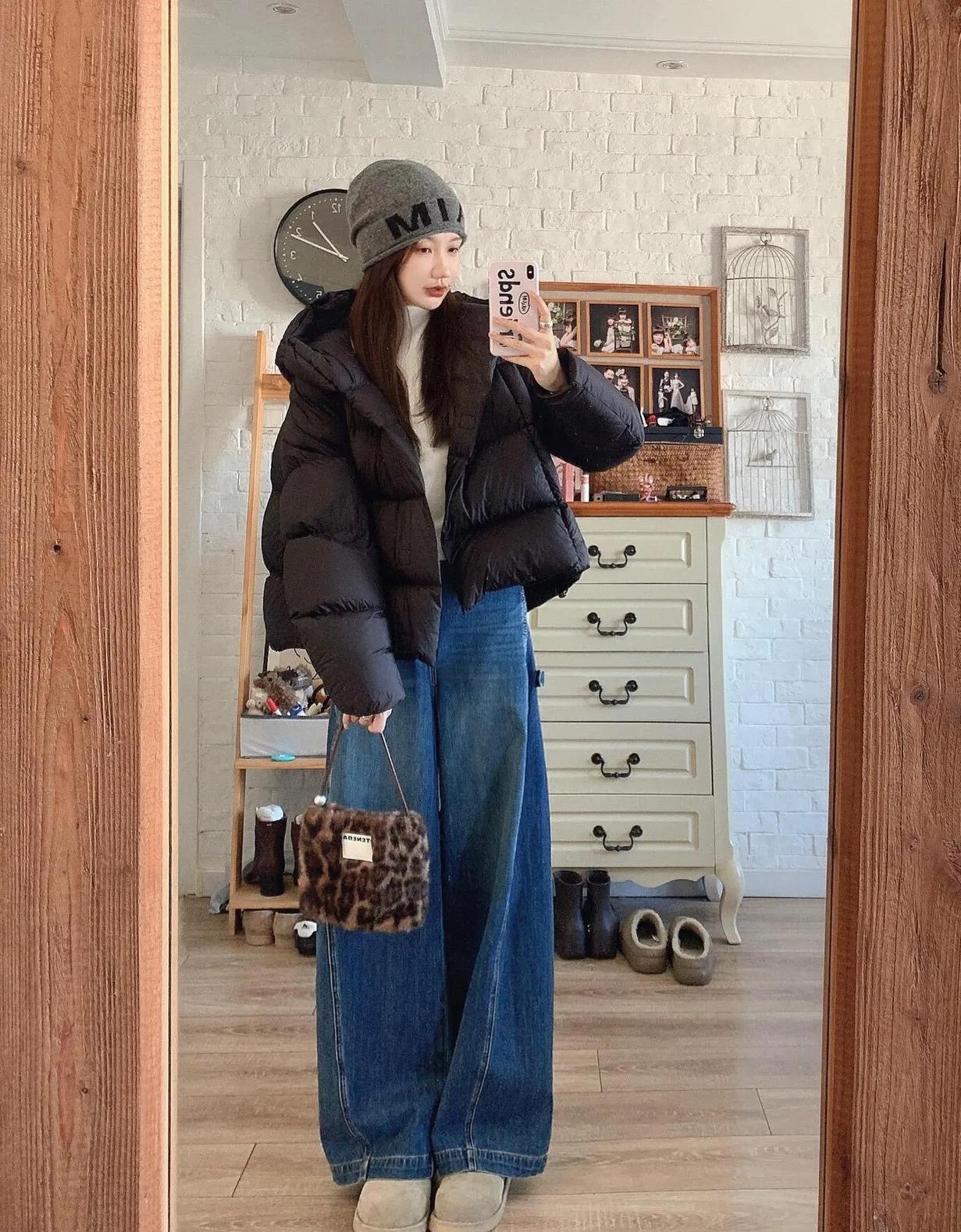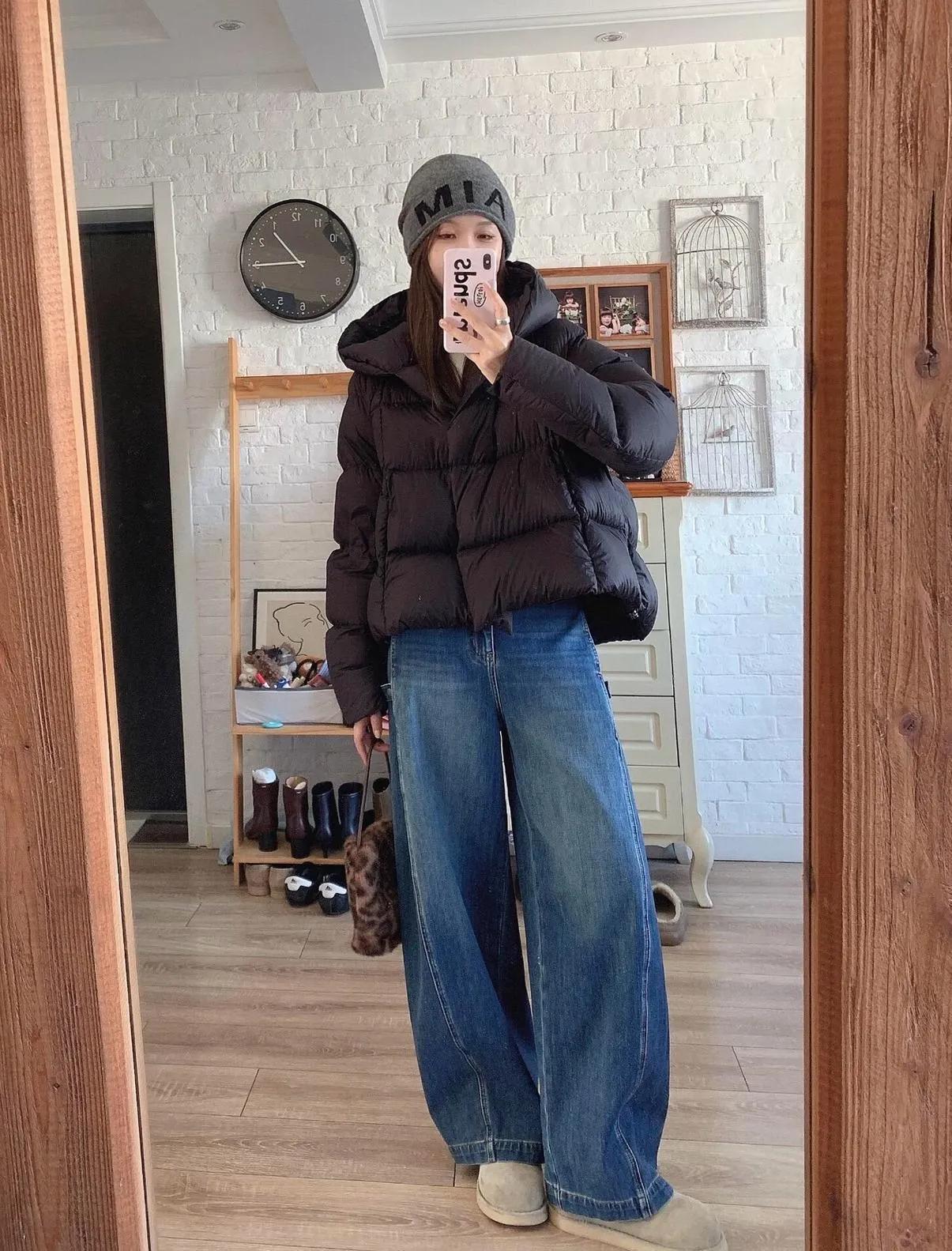 黑色羽绒服搭牛仔裤,这组合真的百看不厌!显瘦又百搭,出门不用费脑,时髦感直接拉满!显瘦穿搭