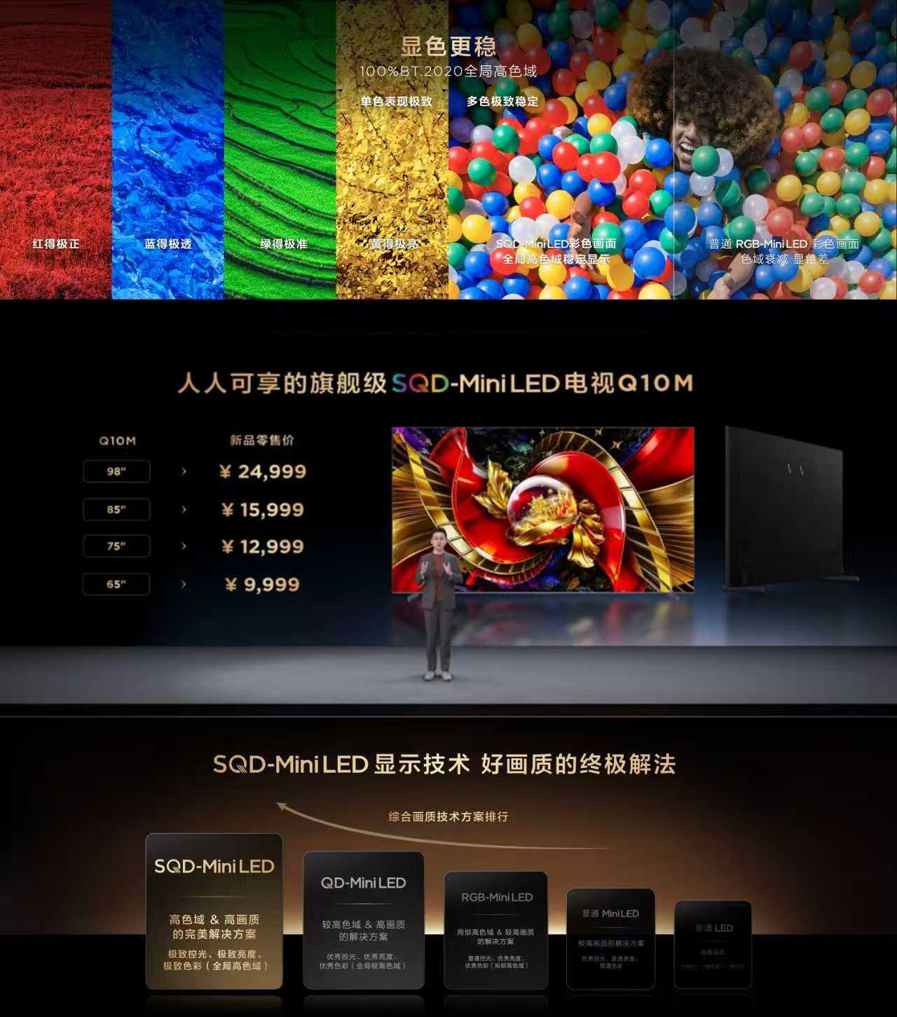 最近好多朋友来问我TCL SQD电视好不好,特别是新亮相的Q10M到底怎么样? 我发现不少人选电视有个误区,觉得“高色域就等于好画质”。其实真正能打的好画质,是靠高色域、高对比度、高峰值亮度这“画质铁三角”协同实现的。而TCL的SQD-Mini LED技术,正是围绕这三个核心发力。今天就跟大家具体展开聊聊。 要了解TCL Q10M怎么样,得先搞清楚它用的SQD技术到底强在哪: 传统RGB-Mini LED需要红、绿、蓝三颗灯珠才能组合成一个控光分区,不仅分区数量受限制,发光效率也有折损。而TCL的SQD技术,单颗背光光珠就能独立构成一个分区。这意味着在同样的机身规格下,SQD能实现的控光分区数量可以远超RGB方案,控光自然更精细。而且因为背光全是纯净白光,也避免了串色、偏色等问题,这是TCL Q10M画质出色的基础。 那么TCL Q10M电视的实际观感到底咋样?下面简单聊聊: 首先在对比度方面,它做到了4032个万象分区,配合TCL华星自家的超级蝶翼华曜屏,原生对比度达到了7000:1。看暗场景多的片子,能明显感觉到暗部不是死黑一片,细节很有层次;亮部也不会过曝刺眼,整体画面非常干净通透。 其次是亮度,得益于SQD单芯片的较高发光效率,TCL Q10M的峰值亮度可以达到6000nits,并且搭载了绚彩XDR技术。看一些高动态范围的影片时,比如炙热的阳光、闪耀的钻石等等,高光细节扎实持久,没有一闪而过的突兀感。 在色彩方面,它通过超级量子点技术和晶粹高色阻屏幕,实现了100% BT.2020全局高色域。播一些自然纪录片,树叶的嫩绿到深绿、海水的浅蓝到湛蓝,过渡都很自然饱满,色彩表现得很纯净。 除了旗舰级的画质体验,TCL Q10M日常用起来也很舒服。它的“极景·无黑边”设计让屏占比非常高,接近百分之百,看电影时沉浸感很强。自带安桥音响,声音层次感和空间感都不错,日常观影基本不用再额外接音响了。 所以回到最开始的问题:TCL Q10M怎么样? 总的来说,从技术到实际观感,它确实把“画质铁三角”做得比较均衡,SQD-Mini LED的优势体现得挺明显。目前从65吋到98吋都有可选,65吋不到万元,质价比也不错。如果你最近也在纠结电视怎么选,关心画质表现,TCL Q10M这款值得放进清单里仔细看看。