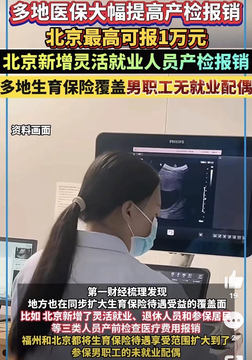 新年刚过,各地就甩出了生育福利大礼包,其中北京的政策尤其让人眼前一亮。不只是在职女职工的产检报销额度大幅提升,连退休人员都能享受产检报销待遇了,福州、惠州、宁夏这些地方也跟着加码,要么直接全额报销,要么大幅提高报销比例,看得人心里暖暖的。 北京这次的政策是真给力,以前女职工产检最多报3000元,现在3000元以内全报,超过的部分还能报30%,最多能报1万元。更让人意外的是,退休人员也被纳入了报销范围,能享受和在职女职工一样的待遇,这在全国都少见。要知道以前退休后就不在生育保险覆盖范围内了,现在能有这份保障,真的很贴心。福州和惠州更直接,直接实现了政策内产检费用全额报销,宁夏也提高了报销比例和限额,不用设起付线,实实在在减轻了准妈妈们的负担。 其实这份政策最打动人的,是它传递出的温度和诚意。怀孕生子对每个家庭来说都是大事,光产检一项就不少花钱,常规检查加上无创DNA、羊水穿刺这些特殊项目,几千块钱很容易就花出去了。以前报销额度有限,不少家庭都会纠结要不要做某些检查,现在报销力度上来了,大家不用再为钱发愁,能更安心地做好孕期检查,这不仅是给家庭减负,更是在守护母婴健康。 但话说回来,网友们的反应也很真实,有人点赞的同时也在吐槽:缺的不是产检那点报销钱,是养孩子的长期成本。确实,产检报销只是第一步,孩子出生后的托育、教育、住房,还有女性在职场上面临的生育歧视、育儿时间不够等问题,才是更让人头疼的。就像有人说的,产检报销好比给口渴的人递了一杯水,但前面还有漫长的沙漠要走。不过我们不能否认,这杯水解了燃眉之急,也是政策向生育友好型社会迈出的重要一步。 北京把退休人员纳入报销范围,看似照顾了少数人,实则传递了一个重要信号:生育保障不会落下任何一个人。这种全覆盖的思路特别好,让不管是年轻夫妻还是有特殊情况的群体,都能感受到政策的支持。而且各地开始“内卷”式推出福利,说明国家对鼓励生育的决心是实打实的,相信后续会有更多配套政策出台。 产检报销的提升确实让人看到了希望,也让不少家庭的生育压力小了一点。但你觉得这份政策能真正提升大家的生育意愿吗?你心中最需要被解决的生育难题又是什么呢?欢迎在评论区聊聊你的看法。(来源:第一财经日报)