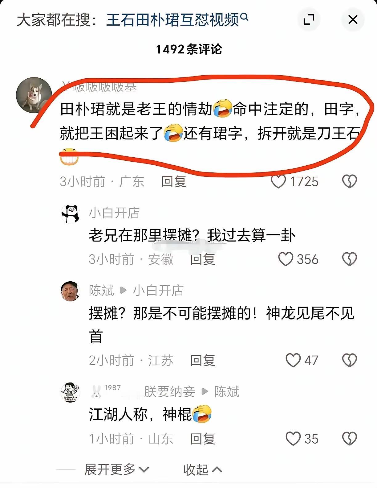 大师破解田朴珺名字玄机! “田”字,就是“王”字困起来!“珺”字拆开来就“刀王石”! 这是多么厉害的大师。 你不信吗?我看了,觉得大师分析的很有道理!这就是命中注定。这就是生命玄学! 你看看老王和小田的状况,从开始的男强女弱,到现在的“女强男弱”,老王,为小田奋斗了半生。 要知道,老王74了。