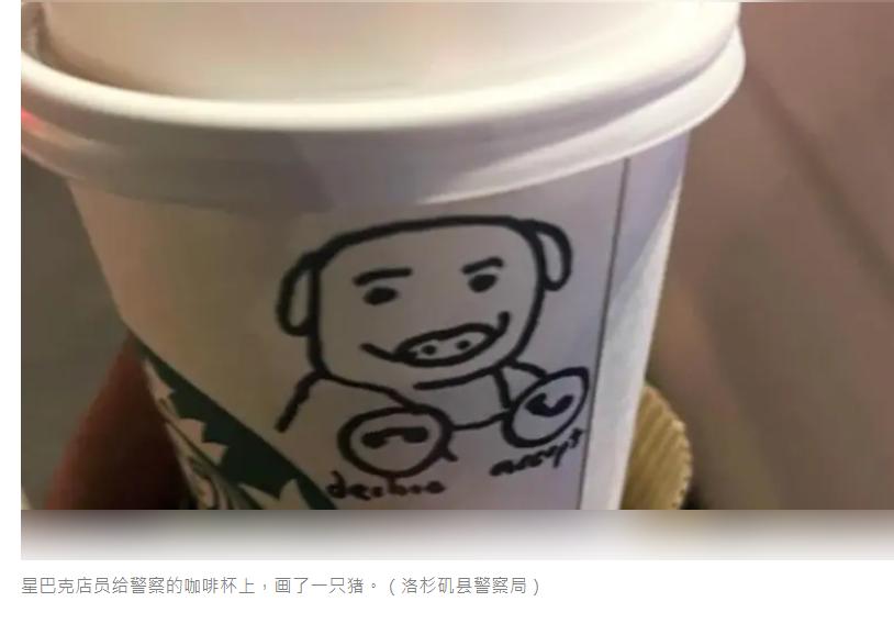 可爱的店员 洛杉矶县警察局(LASD)一名警员,日前加班途中在一家星巴克店买咖啡,拿到的咖啡杯上竟然手绘着一只猪的图案。警局发表声明谴责这起事件,认为这是贬低执法人员的行为。 据KTLA5电视台等媒体报导,这起事件发生在9日,一位没有具名的警员,在洛县纽瓦克市(Norwalk)一家星巴克店买咖啡。这名警员之后在Instagram帐号中表示,自己当时已连续工作16小时,中途在星巴克买杯咖啡,没想到店员竟然在咖啡杯上手绘一只猪的图案给他。 警员为遭遇这起事件沮丧,他在贴文上写道,「这让人感到不被尊重,尤其在为社区服务一整天后,我只是想喝杯咖啡提神,结果却感觉很不舒服。」 警局在一份声明中谴责这起事件,指出猪的形象通常被用来贬低执法人员,并表示「这种行为极其冒犯、不恰当、且不可接受」。洛县警局办公室官员表示,这名警员已将此事通报星巴克门店经理,经理表示将对事件展开调查。 洛县警局局长卢纳(Robert Luna)知悉此事后,联系星巴克企业安全部门,「正式提出关切并要求追责」。 卢纳亲自慰问当事警员,强调「针对执法人员的无礼行为绝不容忍」。 星巴克发言人11日傍晚表态谴责员工行为,指出这只猪的图案虽是网络流行表情包,且与执法机构无关,但绝不应出现在顾客的杯子上。发言人表示此事不可接受,已多次联系顾客,并向警局致歉,「我们对致力于保护社区安全的执法人员深怀敬意,已立即启动调查,并将迅速采取行动。」