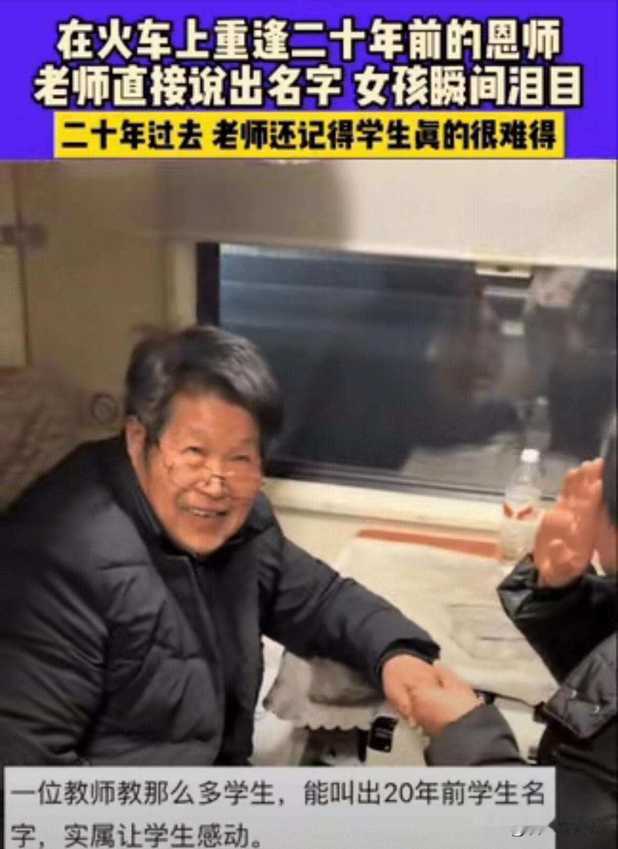 破防了!20年后火车偶遇小学班主任,他竟脱口喊出我这个差生的名字! 前天,我挤上回老家的绿皮火车,刚找到座位,一抬头,整个人愣住了——对面坐着位头发花白、戴着老花镜看报纸的老人。那侧脸,那微微佝偻的背,太熟悉了。我的心怦怦跳,手都有点抖:这不会是我小学五年级的班主任,陈老师吧? 我深吸口气,挪过去,小声试探:“陈……陈老师?” 他抬起头,眯眼看了我三四秒,突然眉头一展,脱口而出:“你是王娟吧?当年坐第二排,老爱在课本上画小人的那个丫头!” 我眼泪“唰”就下来了。真的,毫不夸张。我是个普通学生,成绩中不溜,还调皮,被请过家长。这么多年,我连他是否还活着都不知道。可他竟然记得我,一口叫出名字,连我上课画画的糗事都记得。 聊天才知道,他退休十年了,教过的学生少说上千。“当老师的,记名字不是靠脑子,是靠心。”他笑呵呵地说。我听得鼻子直发酸。想起自己毕业后再没回过学校,教师节只会朋友圈里跟风发句“老师辛苦了”,甚至记不清他全名。可他呢?他把每个孩子,都当真真切切的人,放在心里二十年。 现在好多学校,老师赶着刷题冲排名,学生忙着考分争名额。师生一毕业,就像流水线上的零件,散了就散了。哪还有“记名字”这种“浪费时间”的事?教育越来越高效,却也越来越凉薄。能记住学生名字的老师,靠的不是记忆力,是良心。 回家的路上,我一直想:我们总抱怨人情淡薄,可我们自己,又曾把多少真心放在心上?老师记住的岂止是名字,那是一份被时代快甩丢的、笨拙的温暖。在这个连快递小哥都不会多看你一眼的年代,有人默默把你刻在记忆里二十年——这本身,就是一种沉默的反抗。 原来,最深的尊师重道,从来不是我们挂在嘴上的感恩,而是老师时隔多年,依然愿意喊出你名字的那份“记得”。而我们,却常常忘了他们。 你呢?有没有一位老师,你也一直“记得”?如果火车上遇见当年的老师,你第一句话会说什么?评论区里,聊聊你心里存着的那份温暖吧。