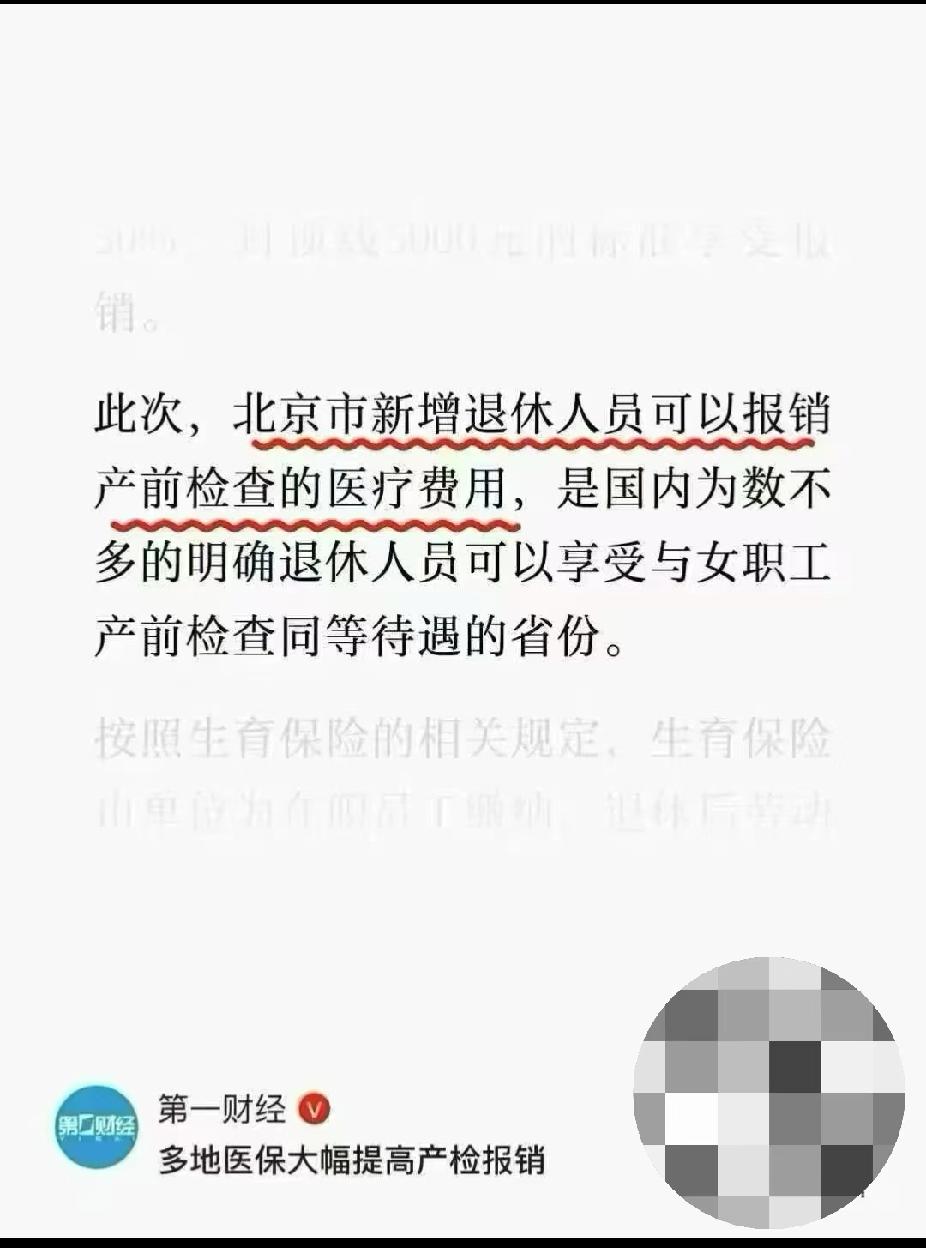 看到这个通知,我要笑了! 北京市新增退休人员可以报销产前检查的医疗费用! 哈哈老弱病残孕是同一人!再怀二胎的时候就是老弱病残孕及抱小孩的乘客! 我同事说是给有钱的退休人员找的二婚小老婆的政策! 男方退休了,小老婆全职太太,然后通过男的产检报销!要知道,北京产检和生育津贴都可以走男方社保! 大家觉得这样的政策好不好呢? 生育报销 医保生育政策 生育医疗费补贴 产检报销 孕妇补贴政策 北京产检报销