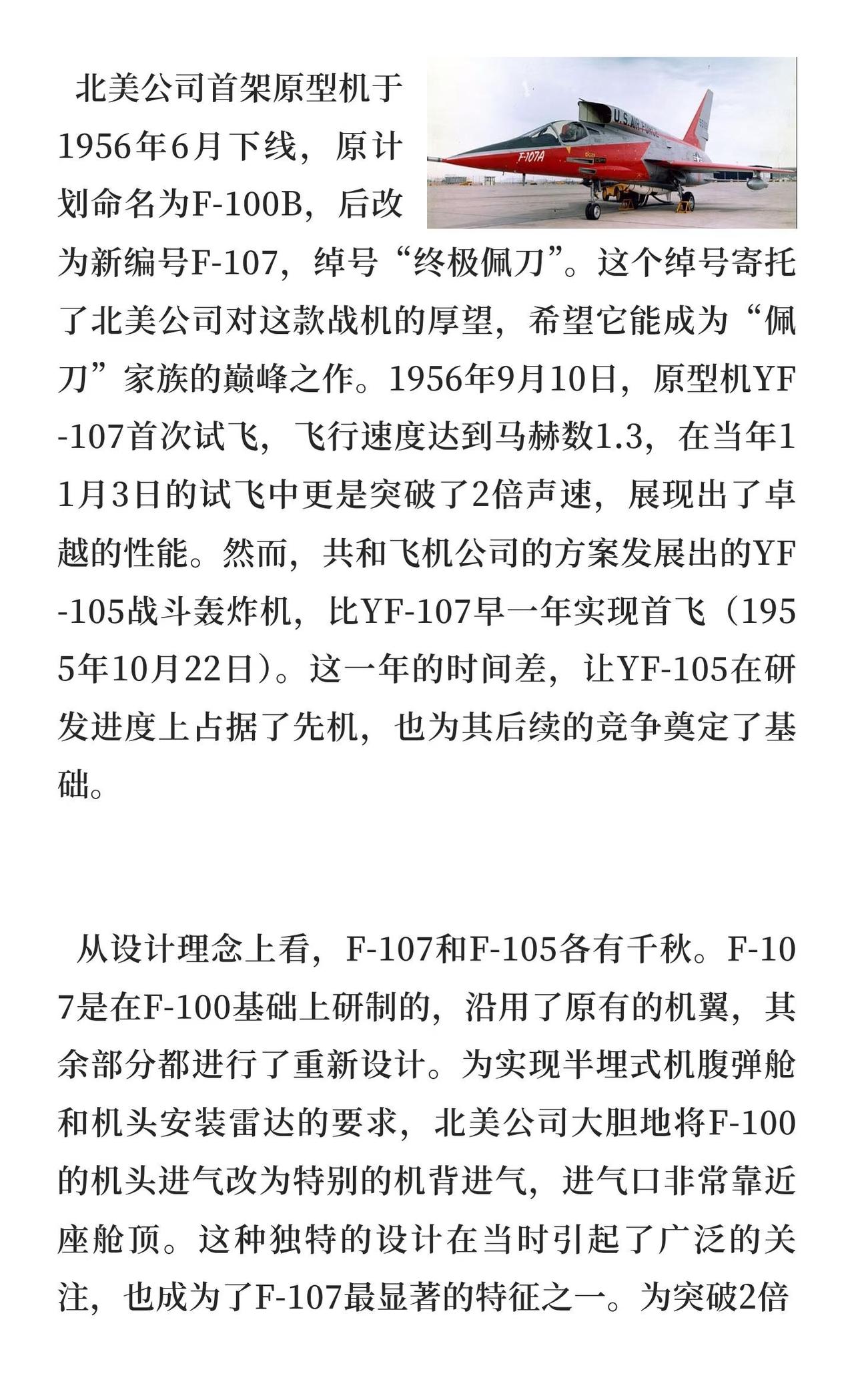 名门之后为何折戟沉沙?F-107“终极佩刀” F-107“终极佩刀”是北美公司为