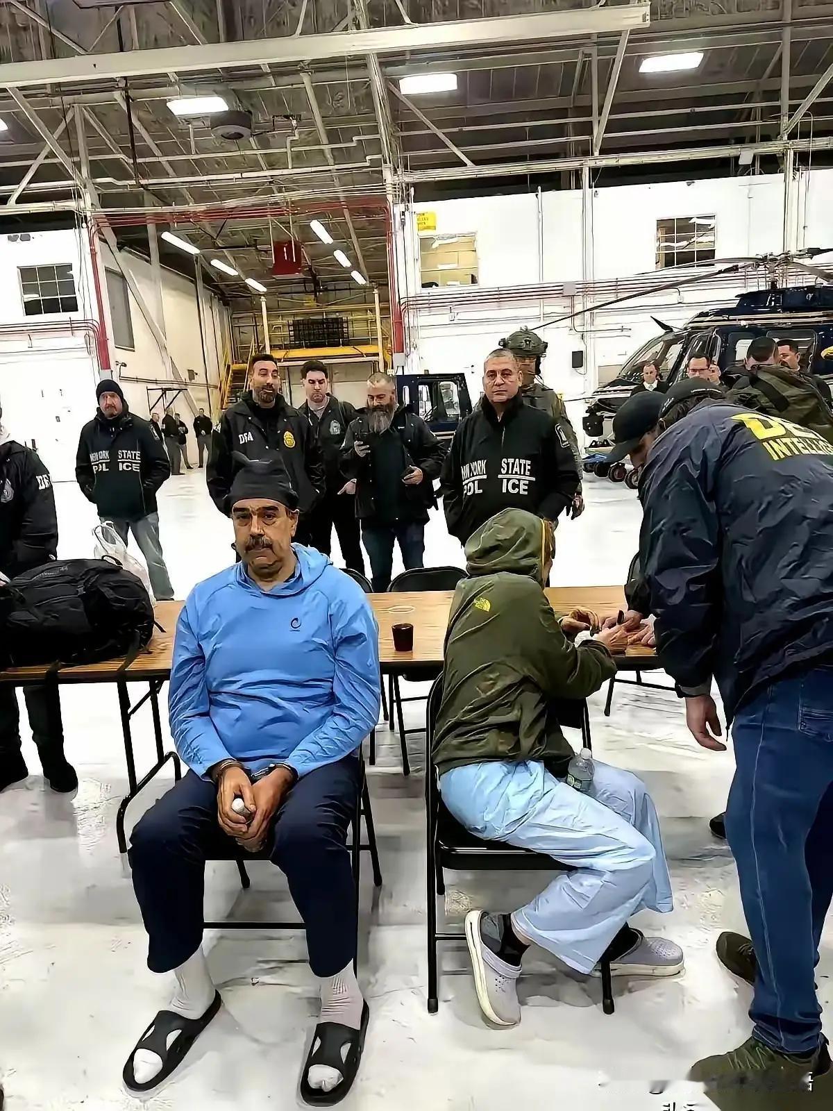 [[呲牙][加油][刀]殘无人道,人神共愤![刀][加油][呲牙]] 美国野蛮地劫持委内瑞拉总统马杜罗夫妇!在严寒的冬天,将夫妇2人押至“法庭”,獄警们身着厚厚的衣服,却给戴着脚镣手铐的马杜罗夫妇穿着极簿的单衣“受审”,真是殘无人道,人神共愤,苍天不容,世界共讨之!!!