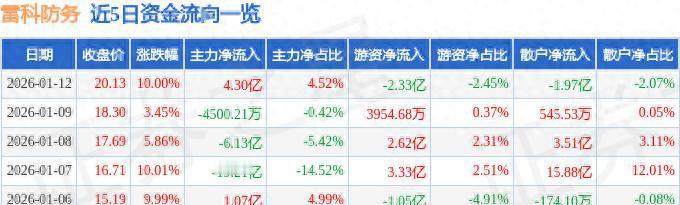 雷科防务1月12日收盘20.13元,连续9个交易日偏离值累计超过106%,直接把