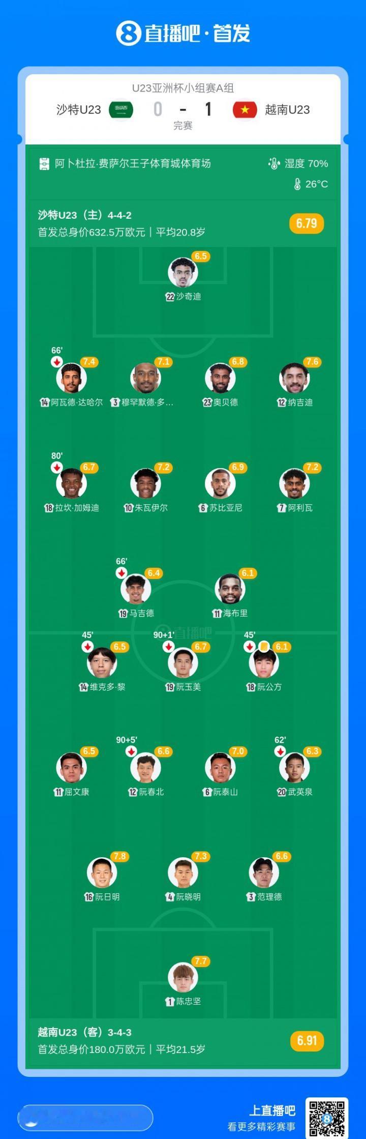 越南U23末轮1-0干掉沙特,直接把3.5倍身价的对手踹出局。 小组三场踢完,2-0约旦,2-1吉尔吉斯斯坦,再加这1-0,总共5球只丢1球,场均净胜超过1球,防守硬得像铁板。 沙特首发身价632万欧元,越南才180万。差了三倍半的钱,却被这帮年轻人踢得毫无脾气,最后时刻还差点被再捅一刀。 钱多不等于会踢球。越南用跑动、纪律和狠劲,证明了足球场上最贵的从来不是转会费,而是那股不服输的火。 下一场,他们要碰B组第二。黑马故事还没完。