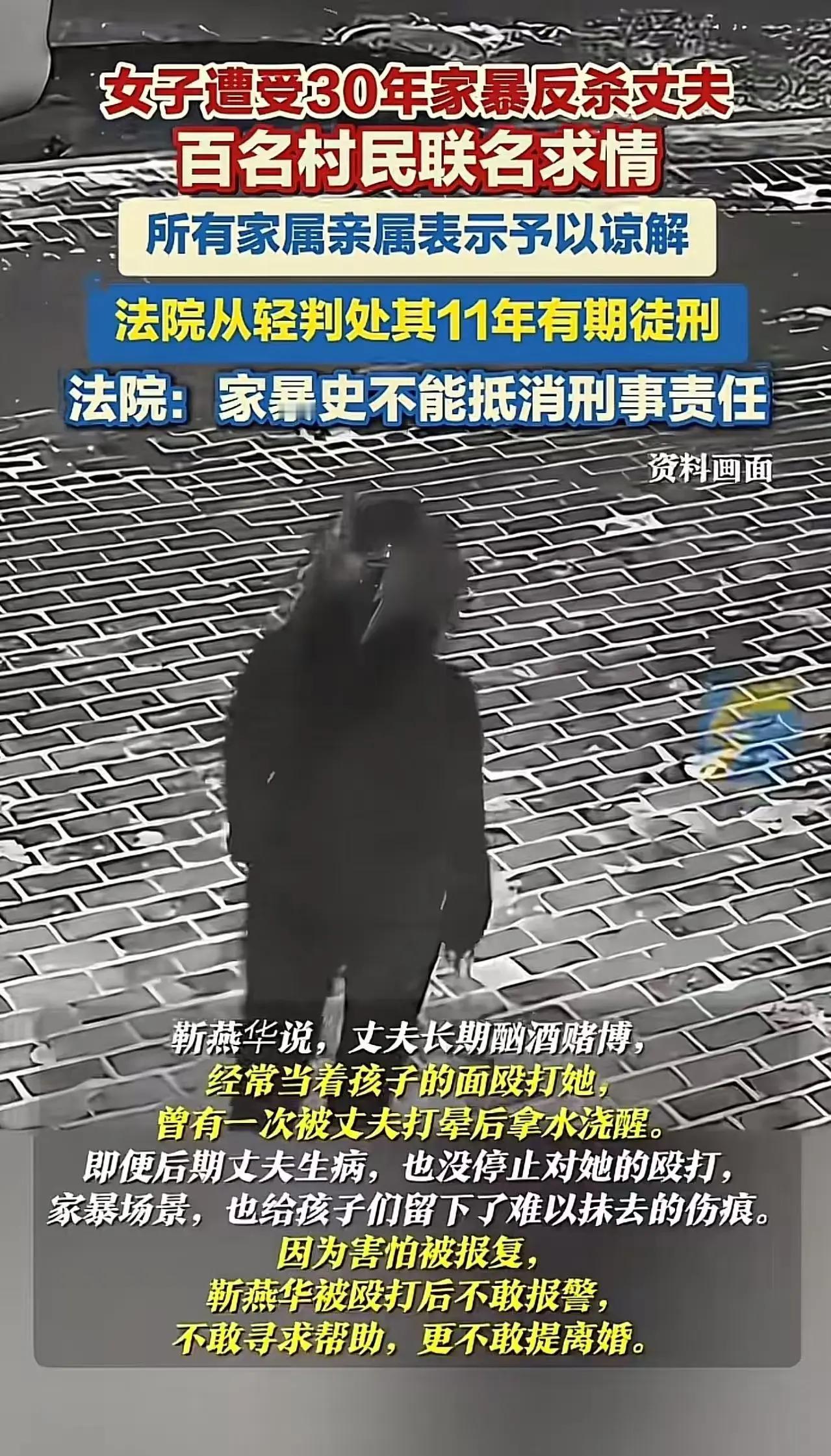哈尔滨,女子遭受30年家暴,忍无可忍反杀丈夫。事后,百名村民联名求情,所有家属亲属表示予以谅解,法院从轻判处有期徒刑11年!法院:家暴史不能抵消刑事责任!网友:家暴的时候法律在哪里? 在这个寒冷的冬夜,哈尔滨的一个普通家庭却上演了一场令人扼腕叹息的悲剧。女子遭受了长达30年的家暴折磨,她的身心早已崩溃,忍耐到了极限。最终,她选择用生命的反抗,结束了那场令人心碎的折磨。这个决定,或许在旁人看来是极端,但谁能真正理解一个被折磨多年的灵魂的痛苦?谁又能站在受害者的角度,感受到那种深埋心底的绝望与无助? 然而,事情的另一面也令人深思。事发后,村民们纷纷联名求情,所有家属亲属也表示谅解,似乎在某种程度上,社会的某些角度依然在试图“理解”那段漫长的家暴岁月。法院最终判处女子有期徒刑11年,理由竟然是“家暴史不能抵消刑事责任”。这背后,折射出的是我们社会对家庭暴力的复杂态度——法律的铁律与人情的温度之间,似乎总是难以找到一个完美的平衡点。 网友们的愤怒和质疑声此起彼伏:“家暴的时候法律在哪里?”“30年的折磨,难道只值11年?”这些声音,反映了公众对法律公正的期待,也暴露出我们社会在家庭暴力问题上的无力感。为什么在家庭中,受害者的生命和尊严似乎总是被忽视?为什么法律在面对家庭暴力时,显得如此迟缓和无力?难道我们真的要等到悲剧发生到无法挽回的地步,才开始反思法律的缺失和社会的冷漠? 这起案件让我们不得不思考:家庭暴力的根源究竟在哪里?是制度的漏洞?还是社会的偏见?更重要的是,我们每个人都应该成为家庭暴力的“守门员”,用法律和道德的力量,守护每一个家庭的温暖与尊严。不要等到悲剧发生,才后悔没有早一点站出来反对暴力。 这不仅仅是一起案件,更是一面镜子,照出了我们社会在家庭保护、法律执行、公众意识方面的不足。我们需要的不仅是惩罚,更是预防;不仅是冷冰冰的法律条文,更是每个人心中的那份正义感。只有当我们每个人都能勇敢站出来,为受害者发声,才能让“家暴”这个阴影逐渐散去,让每一个家庭都能真正成为温暖的港湾。 这场悲剧,或许会让我们心碎,但更应成为推动改变的动力。因为,只有当法律真正成为保护每一个家庭的坚强后盾,我们才能迎来一个更加公平、温暖的社会。