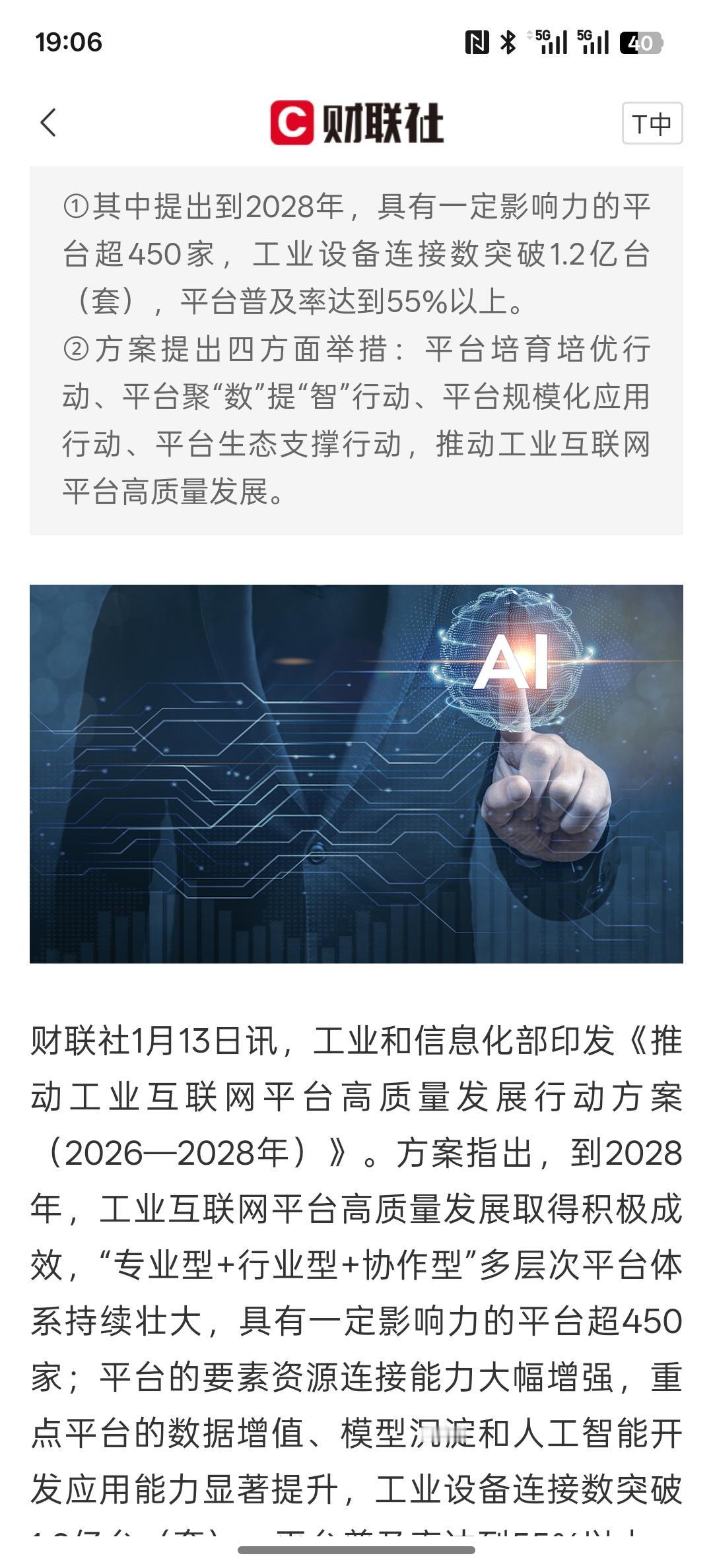 利好AI人工智能,工信部:实施工业互联网与人工智能融合赋能行动 推动人工智能技术在工业全链条渗透! 人工智能将实现更多的工业技术链条的渗透,而中国发展的AI人工智能,将随着这些技术不断的落地,将带来更多的经济增长!而并非欧美说的那样AI人工智能有泡沫!现在人工智能在中国得到快速的应用场景落地,对于企业的发展起到了巨大的升级改造作用!中国未来的制造业以及各行各业变得更加智能化,也体现中国的科技大力发展! 未来的新型互联网将是AI人工智能深度融合!