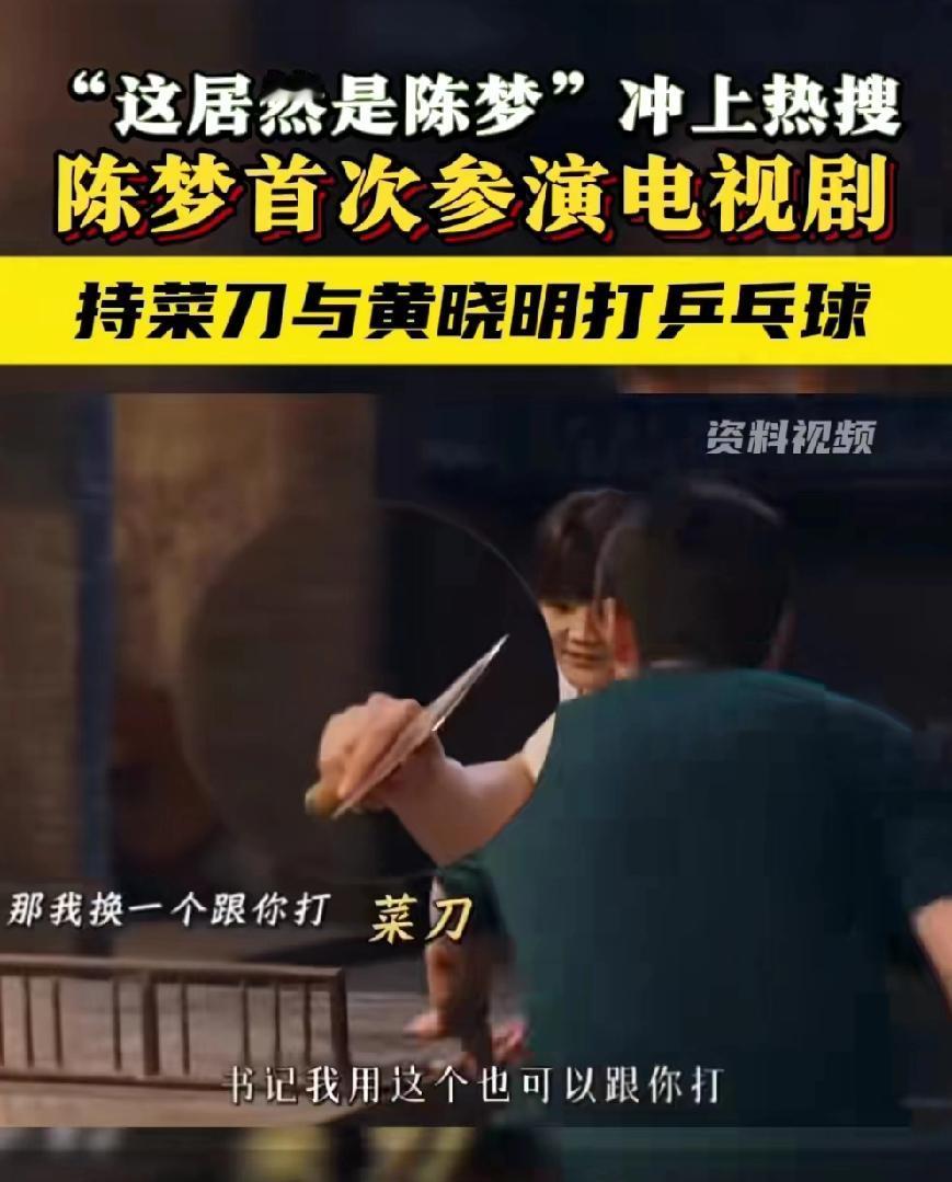 家人们谁能想到!奥运冠军陈梦居然进军演艺圈了,首次演电视剧就贡献名场面——手持菜刀和黄晓明对打乒乓球,这又离谱又欢乐的画面,直接让网友笑不活,热度一路飙升! 其实这波跨界纯属意外惊喜,陈梦是黄晓明的亲表妹,本来只是去剧组探班表哥,结果被临时拉来客串。花絮里她一手攥着菜刀、一手挥舞球拍,专业运动员的架势没丢,却因为道具太反差频频笑场,还直言“能演戏特别荣幸”。 网友们看完纷纷留言,有人说“奥运冠军跨界自带笑点,菜刀乒乓球组合绝了”,也有人调侃“晓明哥这是把亲戚团都动员来拍戏了”。现在运动员跨界越来越常见,自带话题度还充满新鲜感。 你觉得陈梦的跨界表现可圈可点吗?你还期待哪些运动员尝试演戏或其他跨界领域?