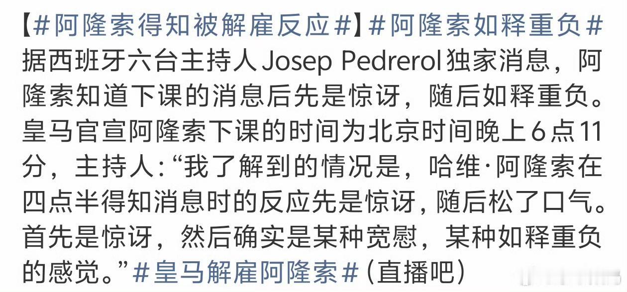 阿隆索得知被解雇什么反应?惊讶后如释重负,仅20分钟会议就谈拢。 皇马从来不是以教练为核心。佛罗伦蒂诺:在皇马,90%球员,10%教练。龙哥的理念里,这个占比差不多是46,甚至37。在皇马下课,是名帅的必经之路。 龙哥不担心找工作的事。