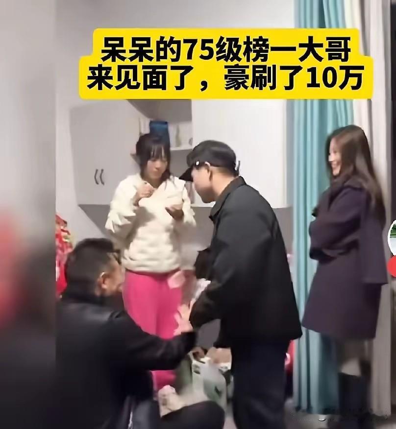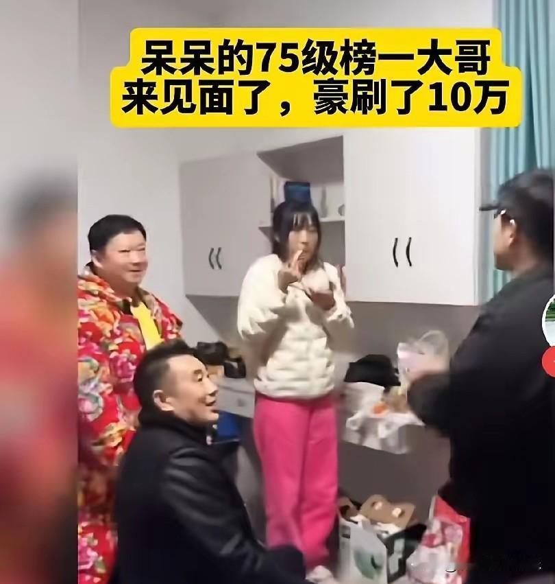 呆呆和75级大哥见面了,大哥给她刷了十万,她没有留人家吃饭,走的时候连送都没有送一下,也没有说谢谢。 她就是个普通女孩,人如其名真的有点呆,可是傻人有傻福,她命多好,一个视频涨粉180多万,礼物收到手软。 看到75级大哥的真容,网友们纷纷议论,75级要刷2000万,有这个钱不如捐给山区孩子,或者弱势群体,刷给主播真的太浪费了。锦上添花不如雪中送炭,给主播送钱真的不如给贫困儿童读书更有意义。