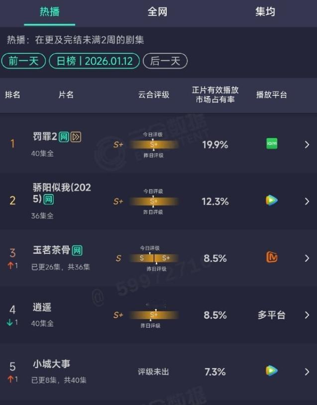 《小城大事》收视率连降2天 CVB收视率从1.9%降到了1.8%,只能说开播当日赵丽颖影响力拉了不少人进场,但是目前的剧情,没能让进场的观众全部留下,第三日云合占比7.3%,增长的趋势太慢了,播放量1600万左右,以目前的趋势来看,最终的云合集均到2000万都难,热度也没起来,至今都是25000。