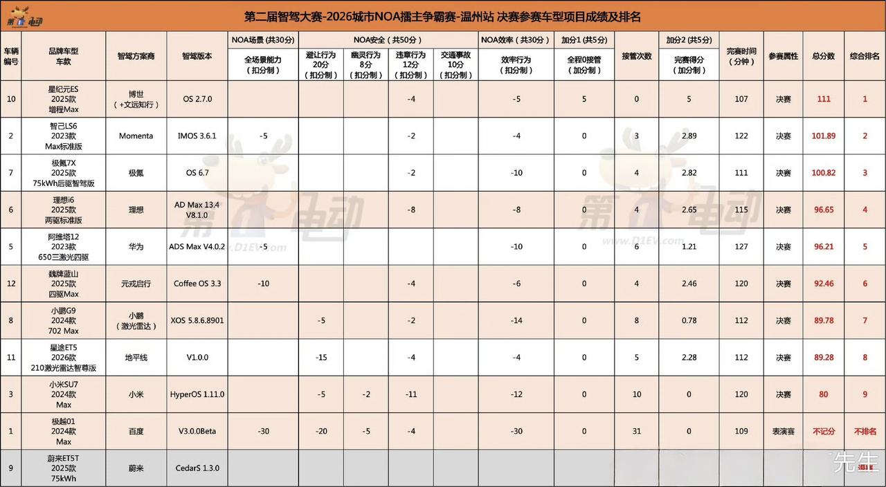 智驾没有护城河 第二届智驾大赛,搭载博世智驾方案的星纪元ES又夺冠了。 这已经是第二次夺冠了吧,这更加应证了我的看法,智驾没有护城河,算法决定智驾水平,现在其他供应商方案已经快速跟上来了。 第二是智己LS6,搭载的是momenta的智驾,也是供应商方案。 第三是极氪7X。之前极氪智驾一直不行,经过半年最近也追上来了,千里浩瀚G-ASD立功了。 博世的智驾就是搭载的车型太少了,网上车主比较少,智己也是,极氪稍微好点,就是之前的刻板印象比较深,会慢慢改正的。【来自懂车帝车友圈】