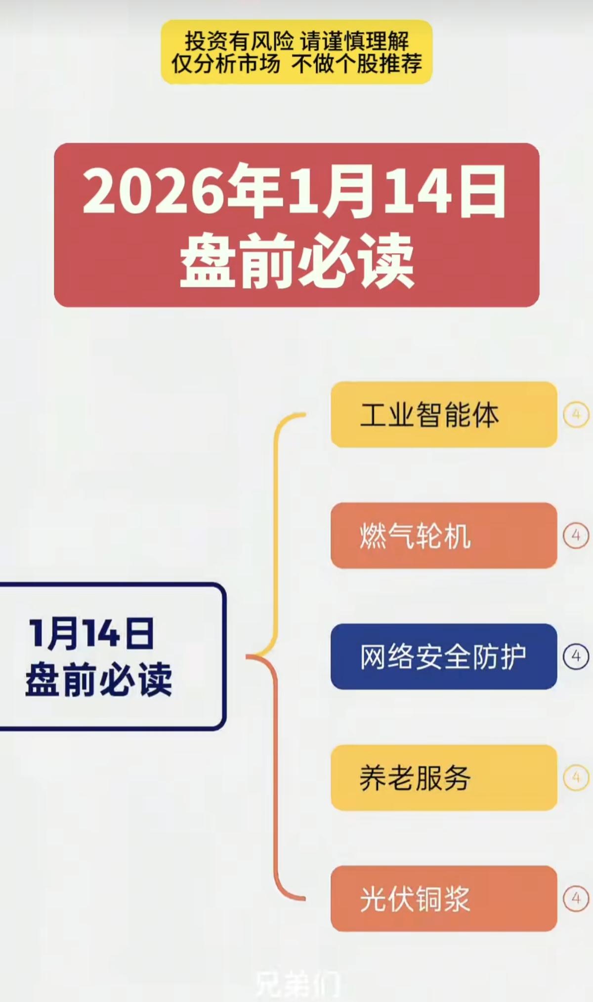 1.14周三 财经热点必读! 1.工业智能体 2.北美缺电,燃气轮机 3.网络安全维护 4.养老服务 5.光伏铜浆