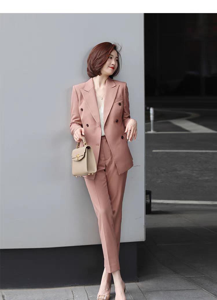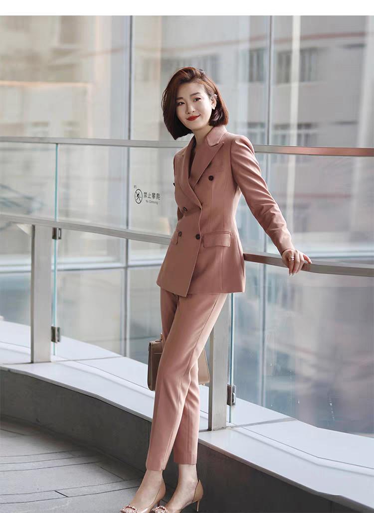 24温柔气质款,粉色经典款,双排扣西装外套搭九分裤套装,办公室自信的起源!轻奢双排扣外套 女生第一次穿职业装是什么体验