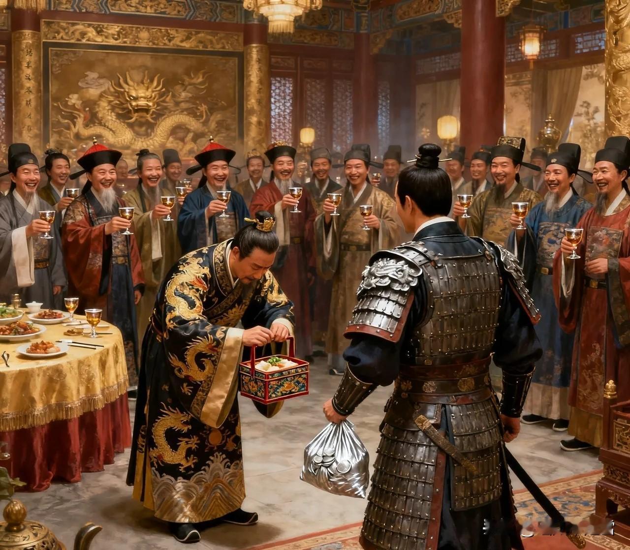 康熙设宴,发现一位将军偷偷打包菜肴,正欲发作,李光地却小声说:” 皇上,他家中有位 9 旬老母,已经 3 天没吃饭了!“ 这话一落,康熙脸上的怒色瞬间僵住,端着酒杯的手顿在半空,目光直直落在那名将军身上。 只见那将军浑身紧绷,双手死死攥着怀里的油纸包,指节都泛了白,脸颊涨得通红,头埋得快要贴到胸口,连大气都不敢喘。 这名将军唤作张彪,是刚从西北噶尔丹战场调回京城的参将。他出身直隶农家,十五岁就跟着父兄参军,二十出头父兄战死沙场,是军中的老卒一路拉扯着他长大。凭着一股不怕死的狠劲,他从伍长一步步熬到参将,身上的伤疤加起来能绕胳膊一圈。 这次回京,是因为他带着三百亲兵死守乌兰布通的一处隘口,硬生生拖住噶尔丹主力三天三夜,为大部队合围争取了关键时间。庆功宴上,他穿着洗得发白的铠甲,坐在一众衣着光鲜的将领中间,本就显得格格不入。 宴会上的山珍海味,他这辈子没见过几次,夹起一块鹿肉放进嘴里,嚼着嚼着就红了眼眶。他想起老家的老母,上次托人带信说,家里的存粮吃完了,邻里接济的粗粮也断了顿。 他攥着怀里的俸禄银子,一路从户部衙门走到皇宫,路过街边的点心铺子,脚步挪不动,却又狠狠心走开——那点银子,要留着给村里的私塾先生付束脩,还要给战死弟兄的寡妻买过冬的棉衣。 他实在拿不出多余的钱,给老母带一口像样的吃食。宴饮过半,看着桌上没怎么动过的烧鹅和蒸鱼,他心里头像被猫爪子挠,犹豫了半天才趁着众人敬酒的空档,用随身的油纸包了几块肉和两个馒头,揣进怀里。 他不是不想光明正大地带走,是怕旁人笑话,更怕扫了皇上的宴饮兴致。 康熙的目光从张彪攥紧的手移到他发白的铠甲袖口,那里还沾着西北战场的沙尘。 他突然想起,半月前户部递上来的奏折里,提过一句西北军饷拖欠的事,当时他忙着和南书房的大臣商议河工,随手批了个“着户部速办”就搁在了一边。 他总说,要让将士们“守土有责,食禄无忧”,却没料到,自己眼前的功臣,连老母的一口饱饭都挣不来。 李光地站在一旁,轻声补充,他前几日去直隶巡查,见过张彪的老母,老人家住在漏风的土坯房里,靠着纺线换几个铜板度日,三天前纺车坏了,实在没了生计,才托人给儿子带了口信。这话没说完,康熙手里的酒杯“咚”一声搁在桌上,满座的喧哗瞬间停了。 张彪听见动静,“噗通”一声跪倒在地,油纸包从怀里掉出来,里面的肉和馒头滚了一地。他趴在地上,头磕得砰砰响,嘴里反复念叨着“臣罪该万死,臣失仪了”。眼泪混着额头的血,滴在冰冷的金砖上。 康熙快步走下台阶,亲手把他扶起来。他的手指触到张彪的胳膊,那胳膊硬得像块铁,却在微微发抖。 康熙没说话,只是让太监传旨,让御膳房把宴会上的菜,每样都包一份,再装上一坛御酒,连同自己腰间的玉佩,一起送到张彪的住处。 他看着张彪通红的眼睛,突然开口,声音带着一丝沙哑:“你没错。孝亲者,方能忠君。 朕的大清,就是要靠你这样的汉子撑着。”满座的大臣都低下了头,有人脸上发烫——他们刚才还在嘲笑张彪的寒酸,转头就看见皇上亲手扶他起身,心里头五味杂陈。 这件事过后,康熙下了两道圣旨。一道是严令户部清查全国军饷拖欠情况,凡有克扣者,一律革职查办;另一道是设立“功臣抚恤局”,专门负责战死将士家属的赡养和在世功臣的家庭补助。 张彪后来又回了西北战场,临走前,他把皇上赐的玉佩挂在老母的床头,说这是皇上赏的,能保佑家里平平安安。 老人家摸着玉佩,笑得合不拢嘴,逢人就说,她的儿子是大清朝的忠臣,皇上是体恤百姓的明君。 其实很多时候,上位者眼里的歌舞升平,底下藏着无数普通人的辛酸。张彪的一个小动作,撕开了庆功宴的光鲜面纱,也让康熙看清了自己治国理政的疏漏。 忠臣的孝,从来都不是丢人的事,反而是一个王朝最该珍视的底色。一个连功臣老母都不顾的朝廷,又怎么能指望将士们舍生忘死?一个连百姓温饱都记挂在心的君王,才能真正坐稳江山。 各位读者你们怎么看?欢迎在评论区讨论。