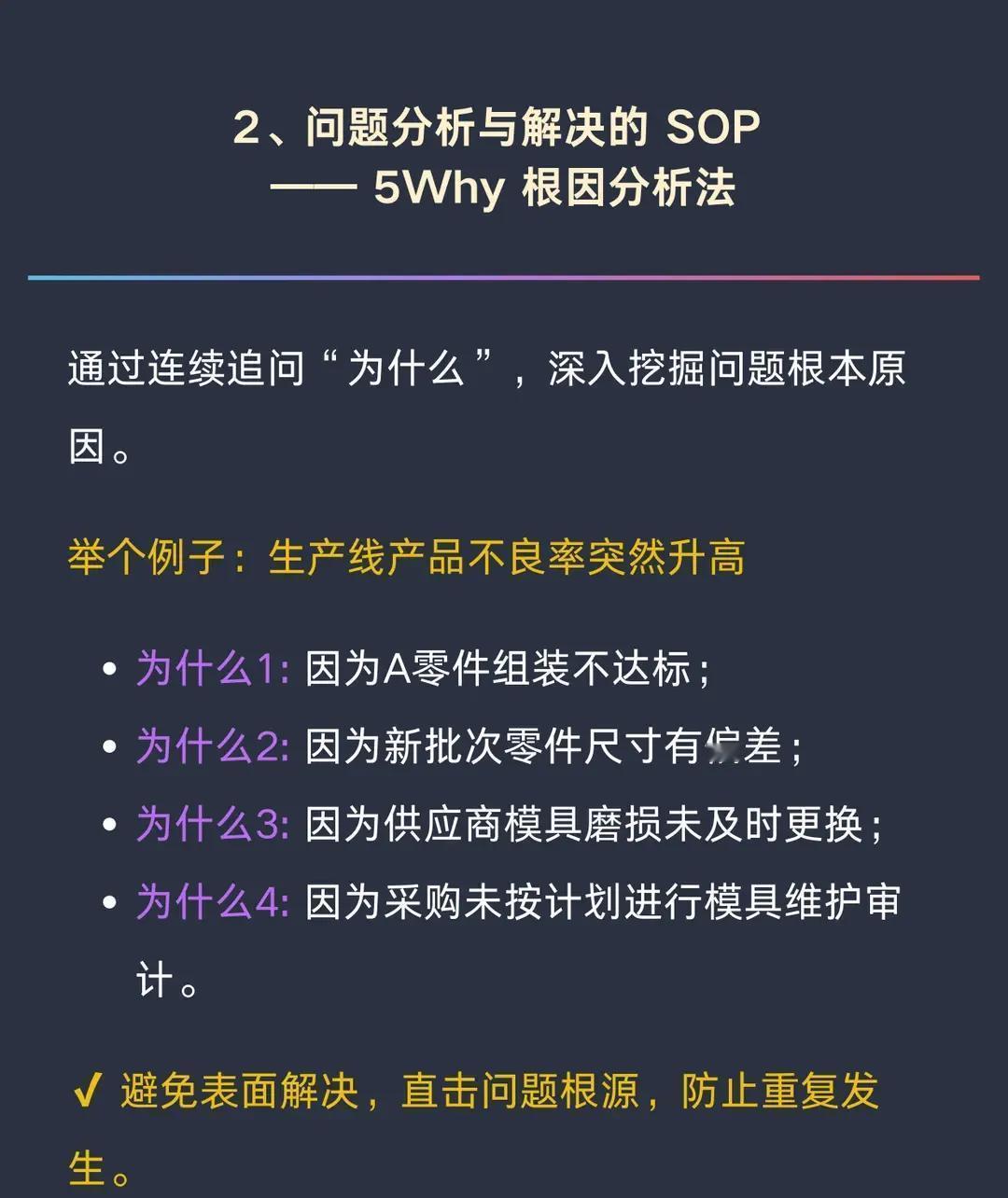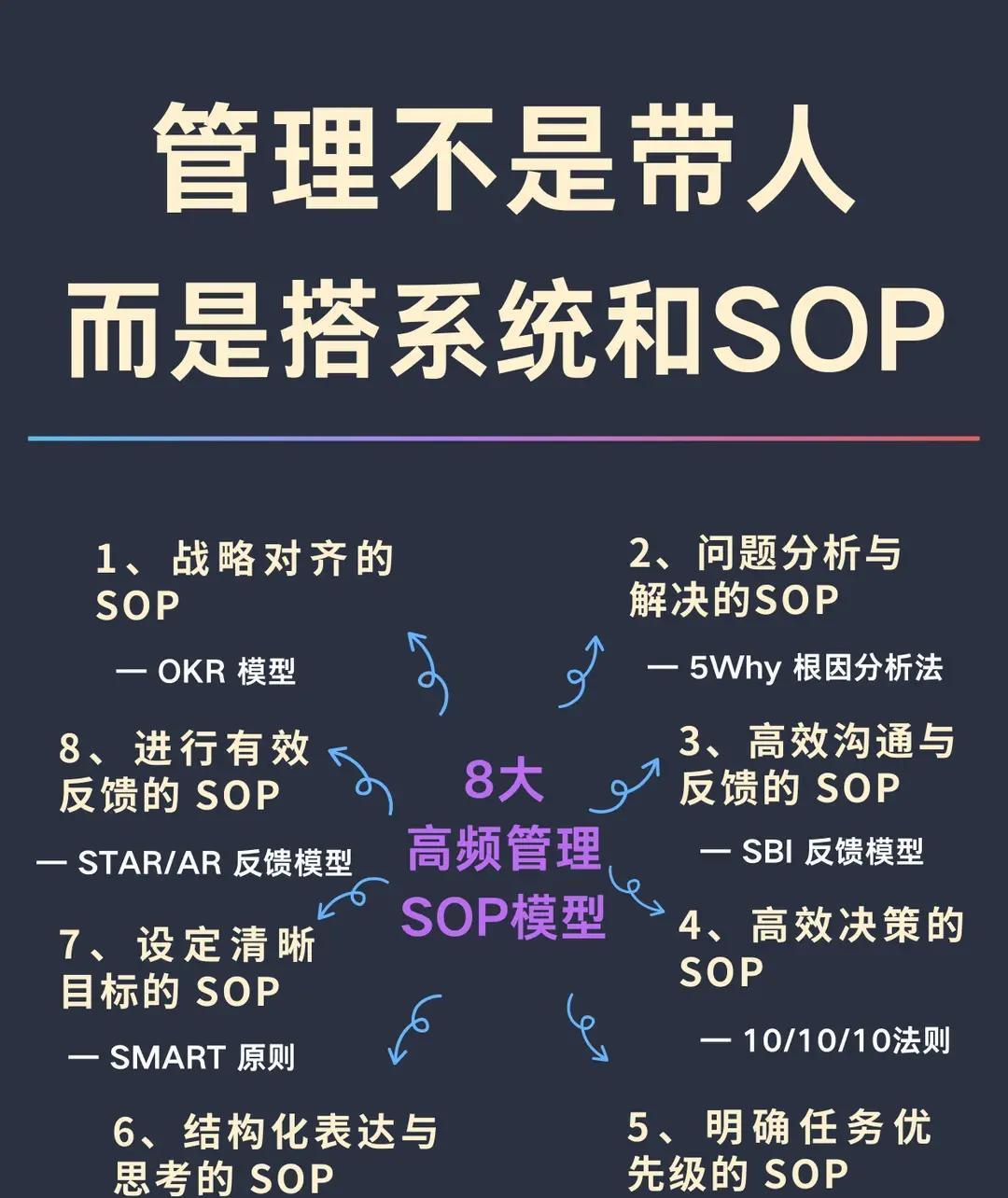 很多管理者每天像消防员一样,到处扑灭问题,结果团队越忙越乱,效率却上不去。真正厉害的人早就跳出这个坑,他们靠一套简单好用的“思维武器”把团队管成自动挡。 现在企业里,目标对齐还是最头疼的事。OKR 这套方法依然火爆,很多公司用它让上下目标拧成一股绳,不再各干各的。碰到问题反复出现,直接上5Why,像刨根问底一样连问五遍为什么,大部分根源立马现形,省掉无数次反复救火。 给员工提意见时别绕弯子,用SBI方式就行:直接说清楚什么情况下、发生了啥、结果怎样,对方听完不炸毛,还知道该改哪。决策纠结的时候,10/10/10法则特别管用——想想10分钟、10个月、10年后会怎样,瞬间就能分清轻重。 事情太多做不过来?MoSCoW法则帮你快速分级,先把“必须做”的干掉,其他的能放就放。汇报工作或讲想法时,用金字塔原理先甩,再层层展开,听的人思路一下就通了。 这些工具不是死记硬背,而是练成条件反射,组合起来用。比如先用SMART把目标定得又具体又可落地,再用OKR对齐全队,出了问题5Why找根源,反馈时SBI表达清楚,团队慢慢就自己会跑了。 牛的管理者不是最忙的那个,而是把系统搭好的人。团队有了这些底层逻辑,就不会天天靠人救火,而是像上了轨道的高铁,越跑越稳,越跑越快。赶紧把这些武器装进你自己的工具箱吧,用一次少累一次