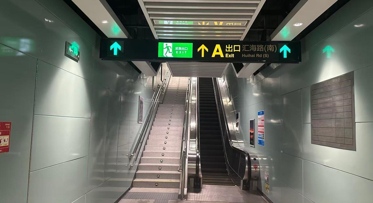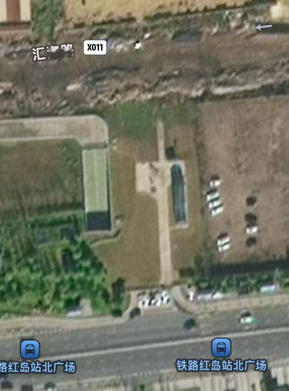 【青岛地铁啄木鸟】𝟓𝟎𝟑𝟔.吊挂 🚇8号线 红岛火车站A 图1/图2: ①贴纸“汇海路(南)”字号过大导致右侧绿色箭头电子屏被遮挡一部分,应重新剪裁贴纸右半部分 ②A出入口站外有一条无硬化小路,A出入口外部现在通不到汇海路,且汇海路东方向还在建(参照图3地图/图4无障碍电梯位置图),但是吊挂使用贴纸修改为“汇海路(南)”,实际上这块没有道路产生误导,显示去往汇海路却无法直接到达,也与线网所有车站吊挂显示出口道路信息都是直接联通的显示原则不一致 应将所有吊挂改为“慕海路(北)Muhai Rd (N)”更合理也符合现状(括号为半角,英文半角括号前面规范空一格) ————————————————————